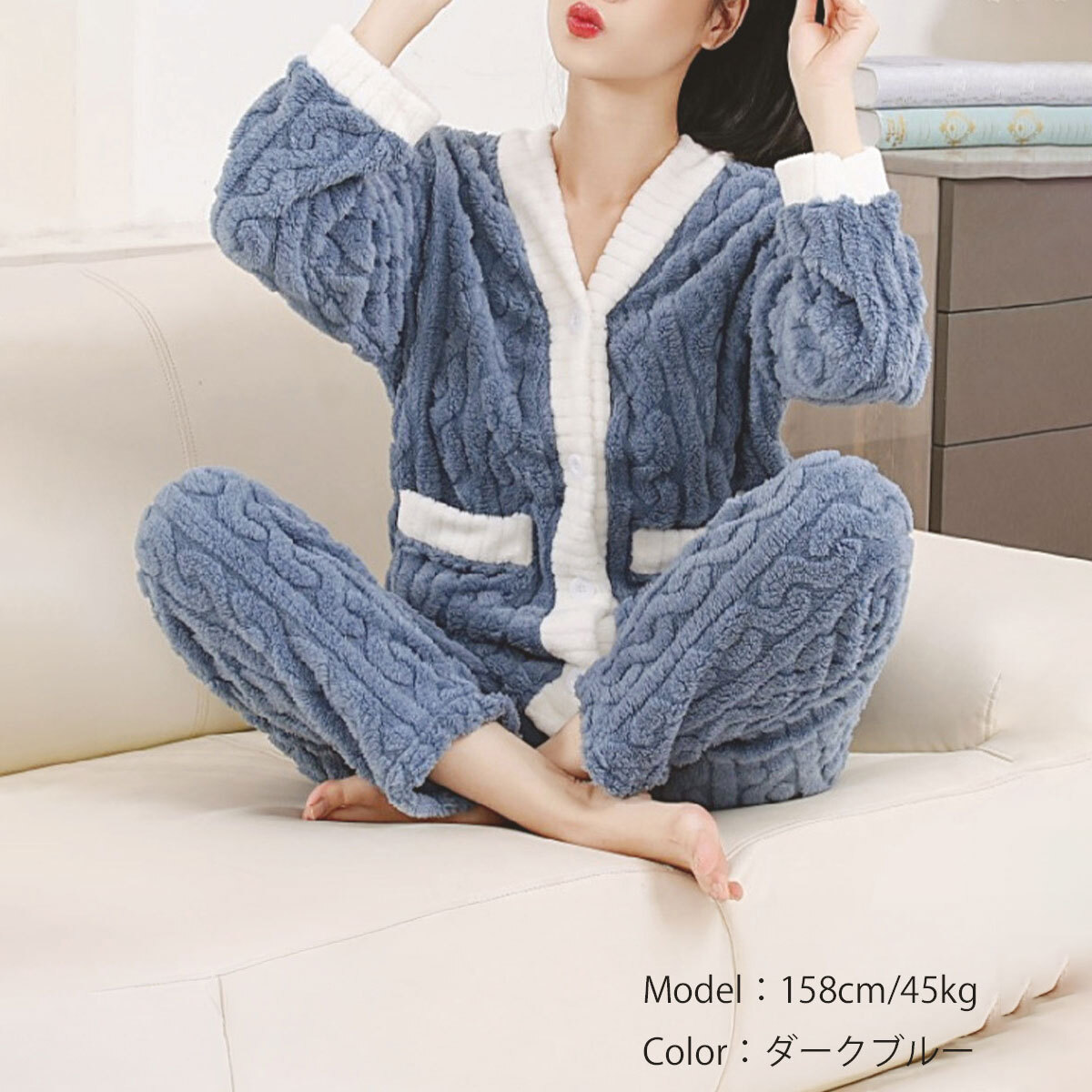 フリース パジャマ ルームウェア セットアップ レディース 韓国 秋冬 暖かい もこもこ おしゃれ 大人 かわいい 部屋着 厚手 毛布パジャマ 防寒 保温 着る毛布 大人可愛い 大人女子