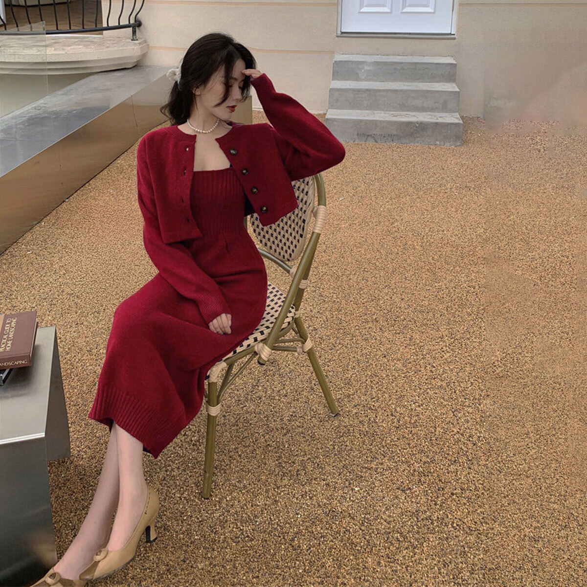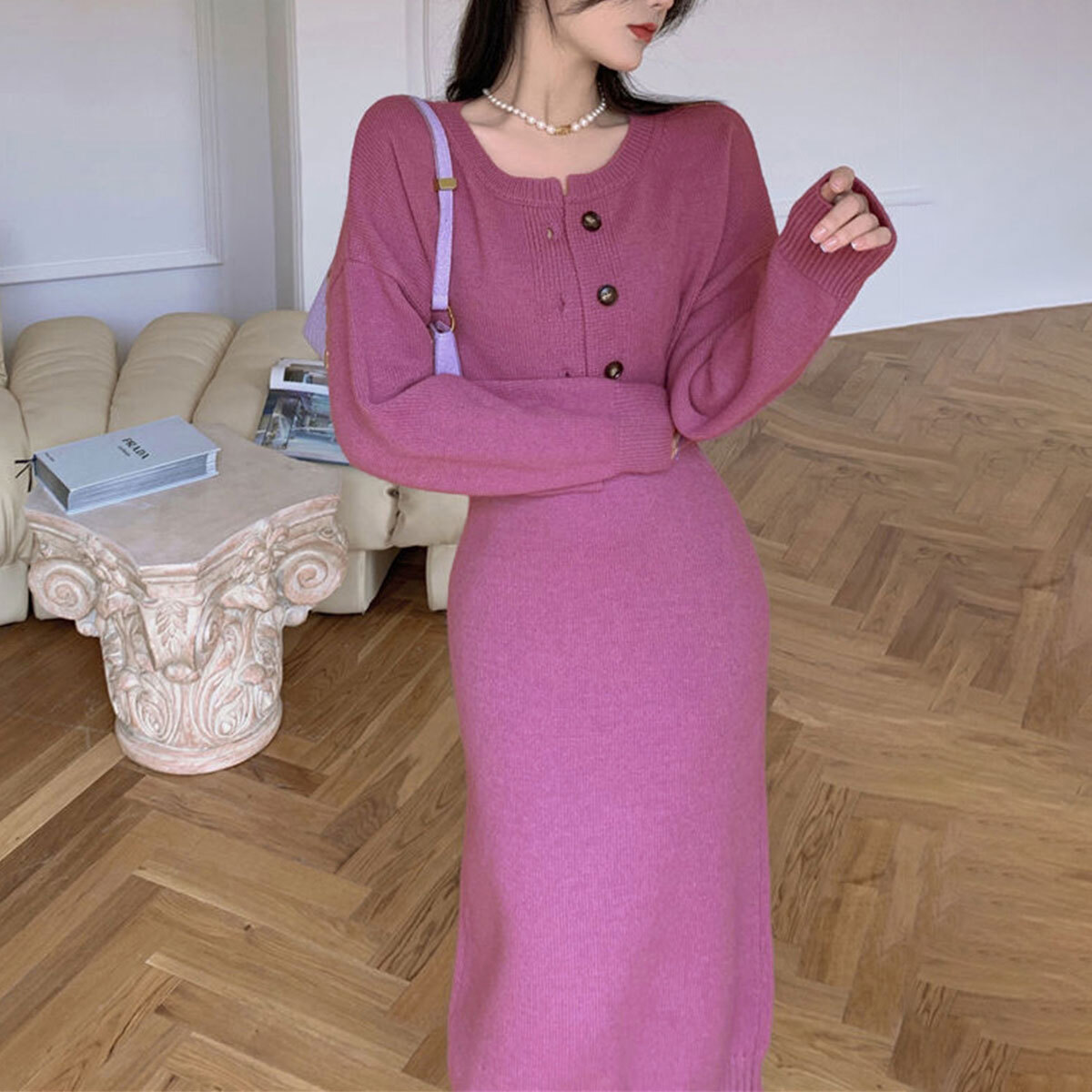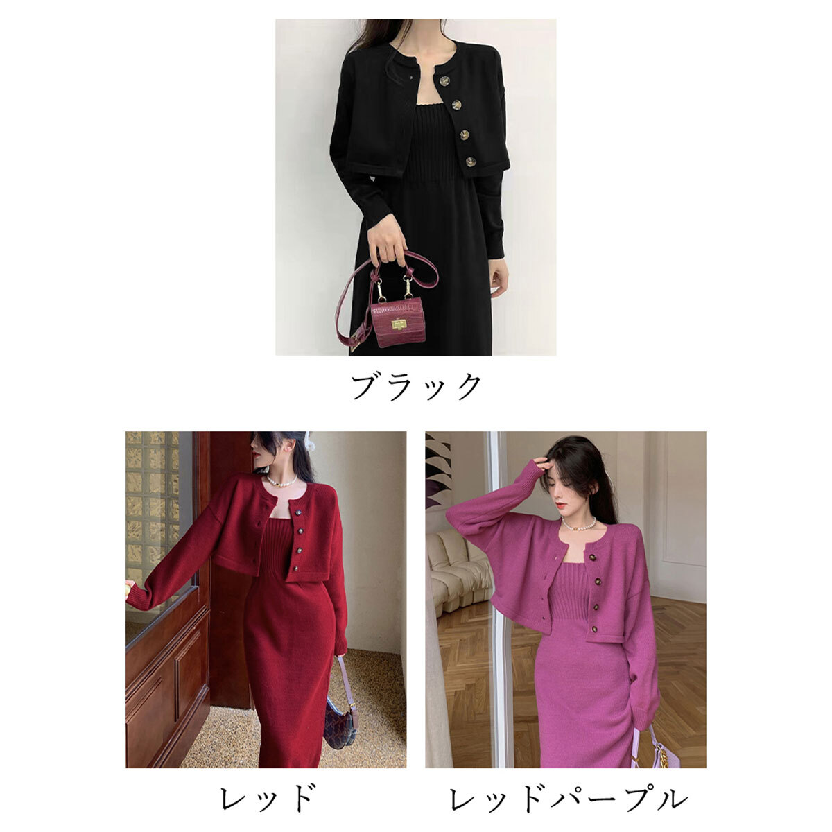 ニットワンピース カーディガン 2点セット レディース 春秋冬 韓国 セットアップ きれいめ 大人 上品 おしゃれ 無地 通勤 ビジネス フォーマル パーティー ワンピース 大人可愛い 大人女子