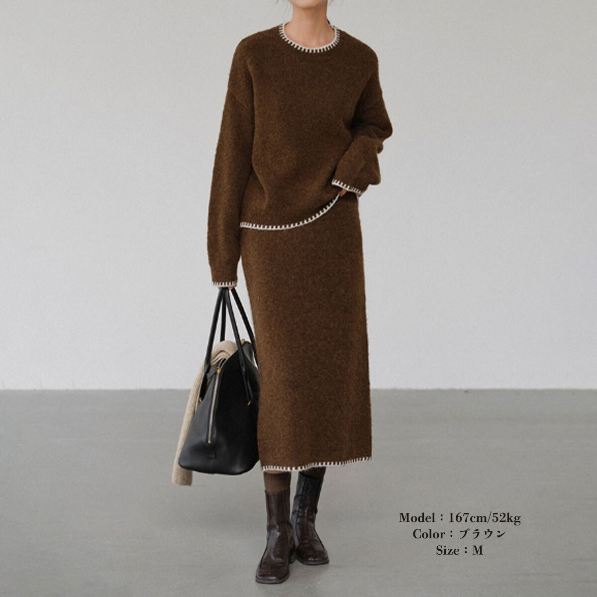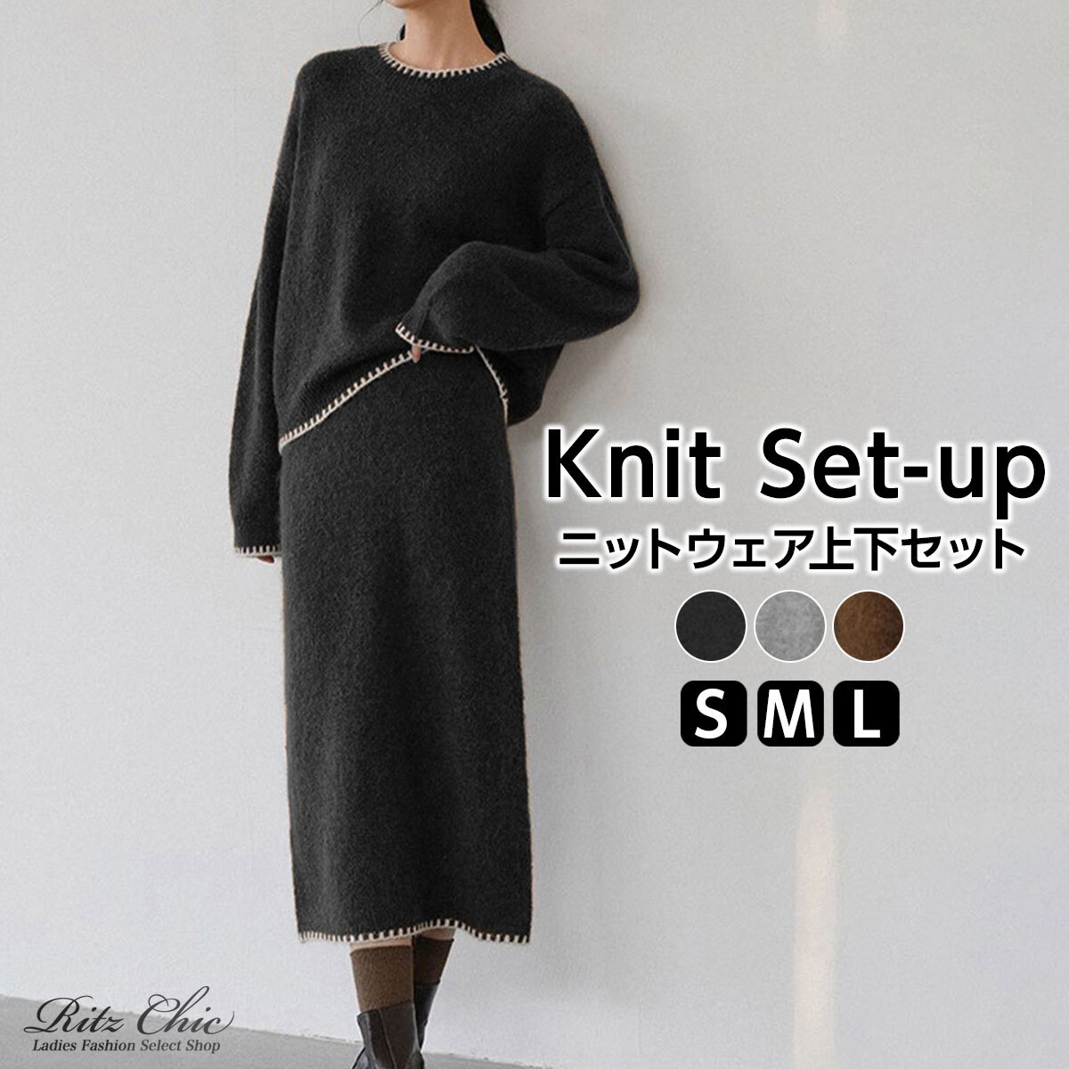 ニット セットアップ トップス スカート 2点セット レディース 秋冬 韓国 きれいめ シンプル 大人 カジュアル ゆったり リラックス 編みニット 大人可愛い 大人女子