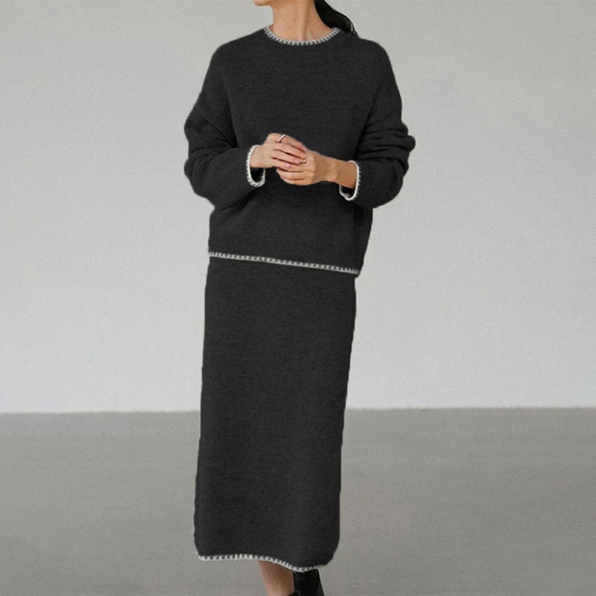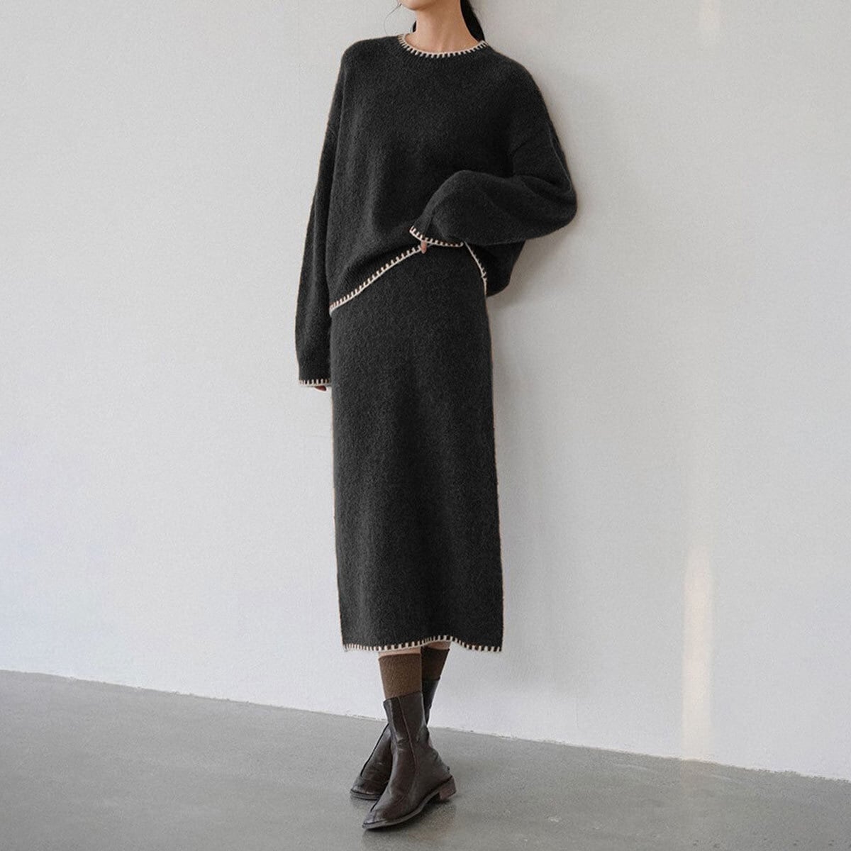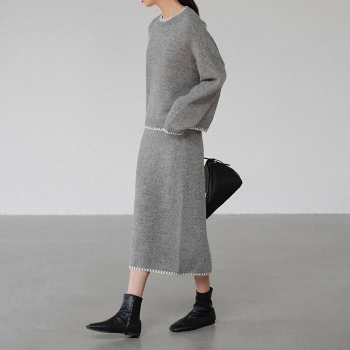 ◇上質な編みニット素材を使用したニットトップス&スカートのセット。