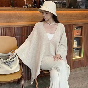 ストールのように羽織れ、秋冬にぴったりの暖かさで防寒性と防風性に優れたポンチョ風のニットカーディガンです。