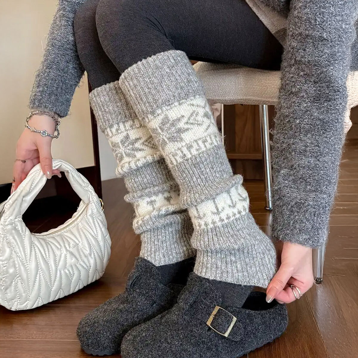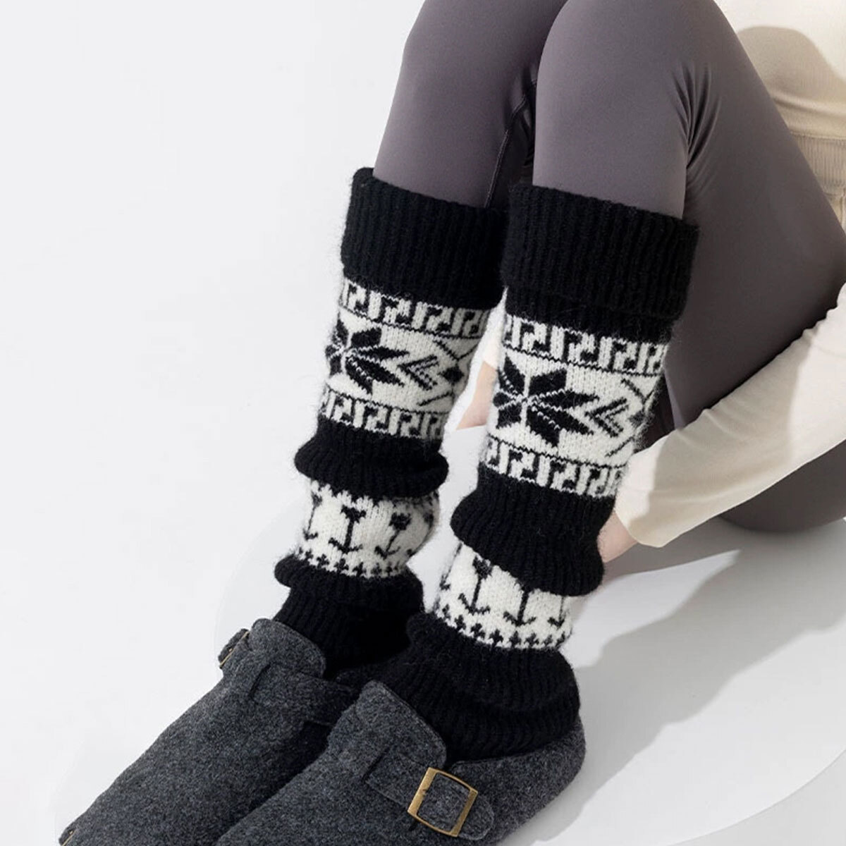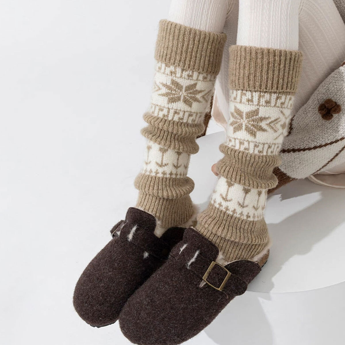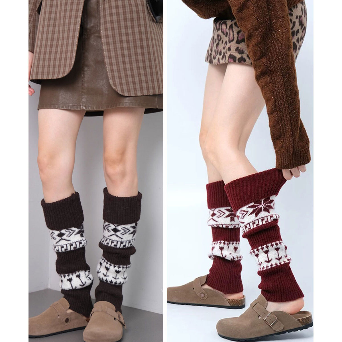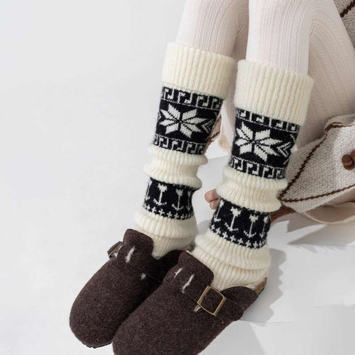 レッグウォーマー ノルディック柄 レディース 春秋冬 韓国 ソックス おしゃれ 大人 かわいい カジュアル スノーフレーク ぽかぽか 暖かい 防寒 保温 冷え性対策 厚手 レッグカバー 大人可愛い 大人女子