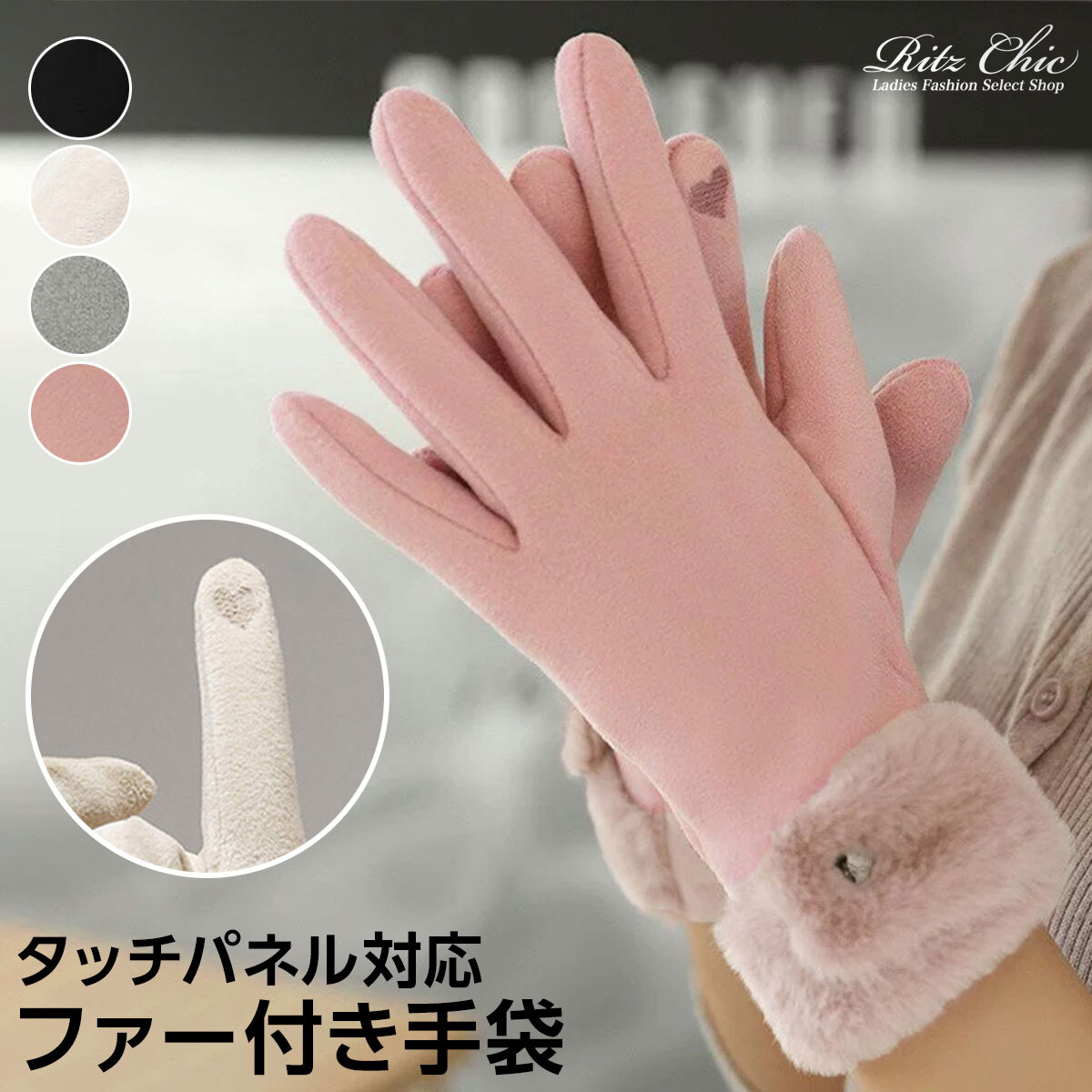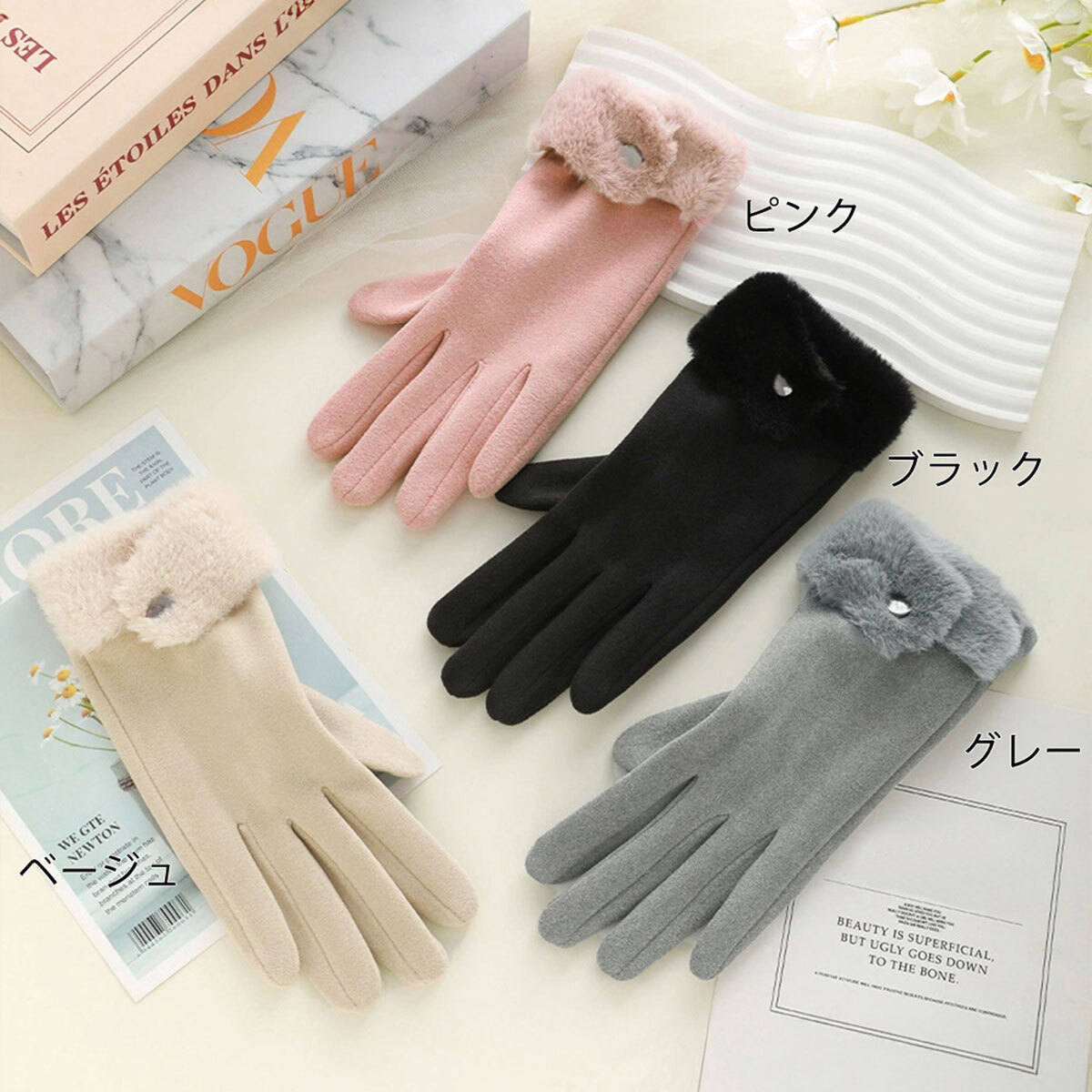 タッチパネル対応 ファー 手袋 レディース 秋冬 韓国 スエード調 グローブ 防寒 保温 防風 暖かい 大人 かわいい きれいめ おしゃれ 通勤 通学 ビジネス 学生 大人可愛い 大人女子