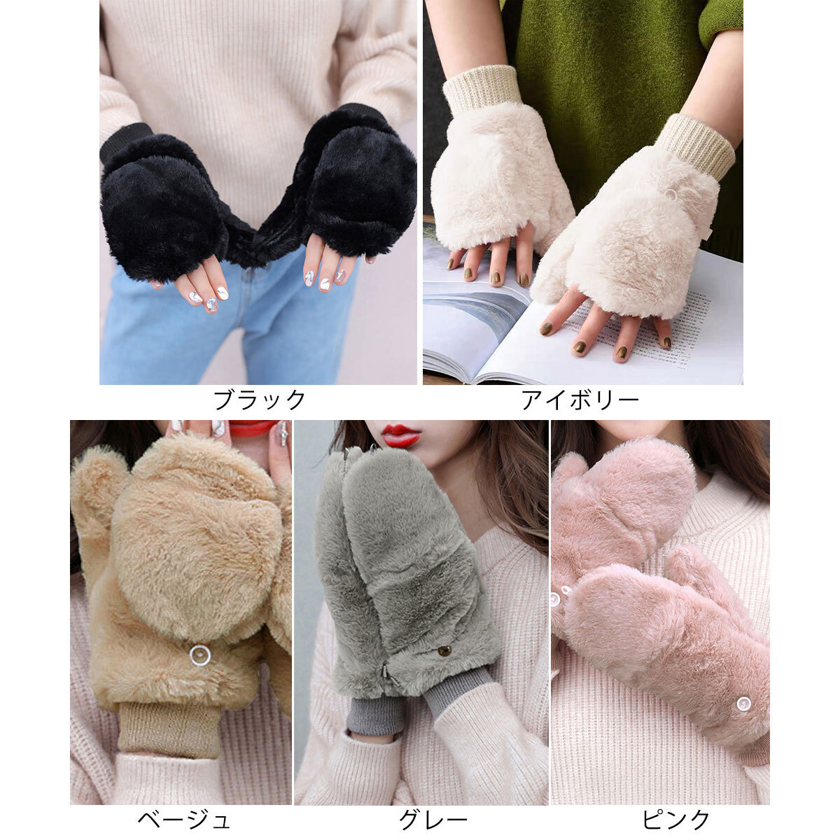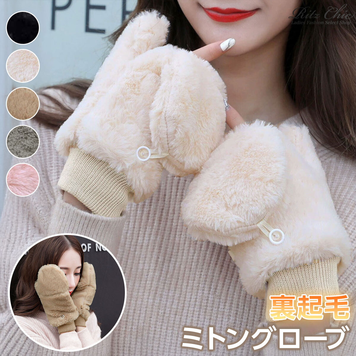 ミトン グローブ 裏起毛 レディース 秋冬 韓国 手袋 おしゃれ 大人 かわいい 防寒 保温 暖かい スマホ対応 ファー手袋 裏ボア 指出し 通勤 通学 アウトドア 大人可愛い 大人女子