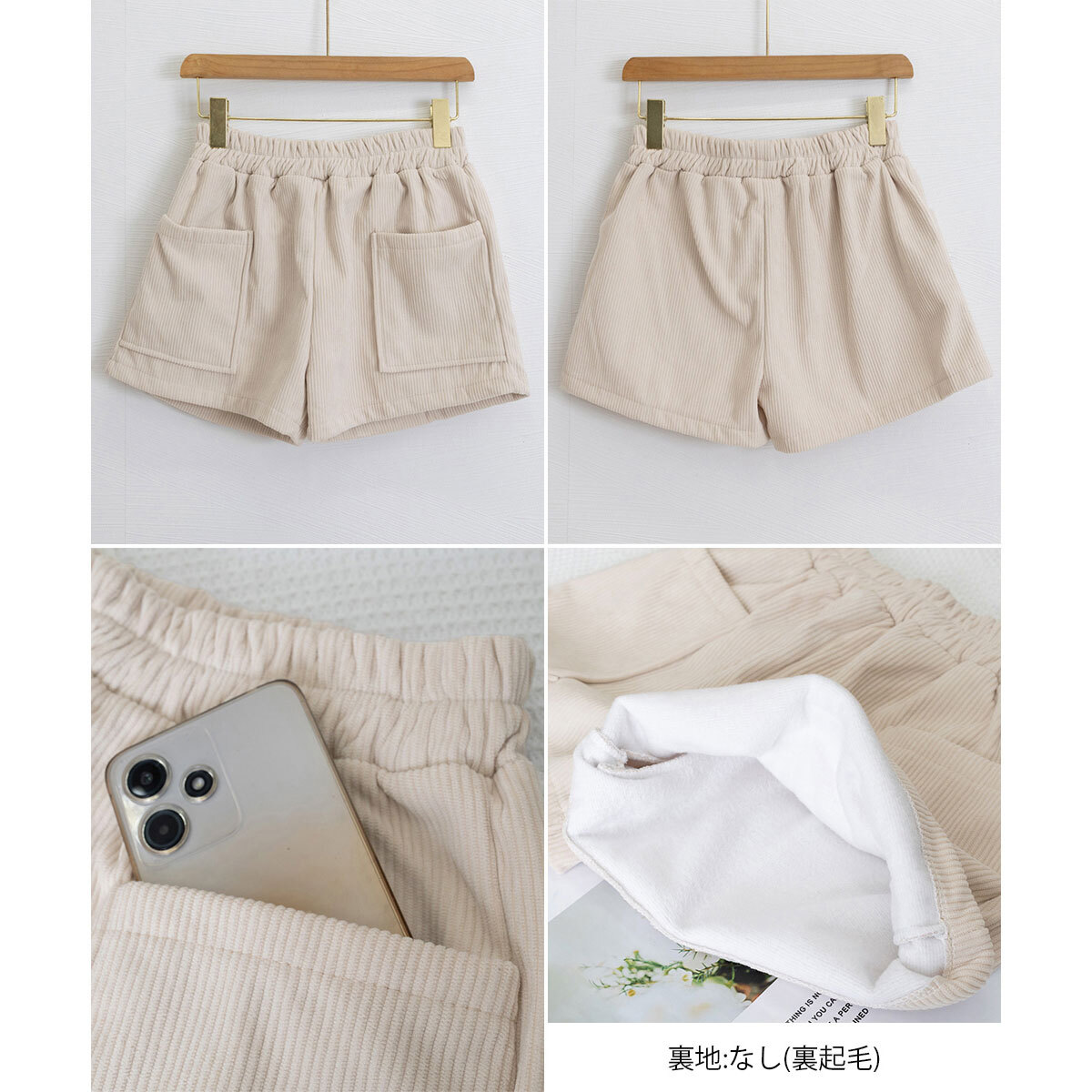 コーデュロイ ショートパンツ 裏起毛 レディース 秋冬 韓国 おしゃれ 大人 かわいい カジュアル シンプル 暖かい ポケット付き ホットパンツ ショーパン 大人可愛い 大人女子