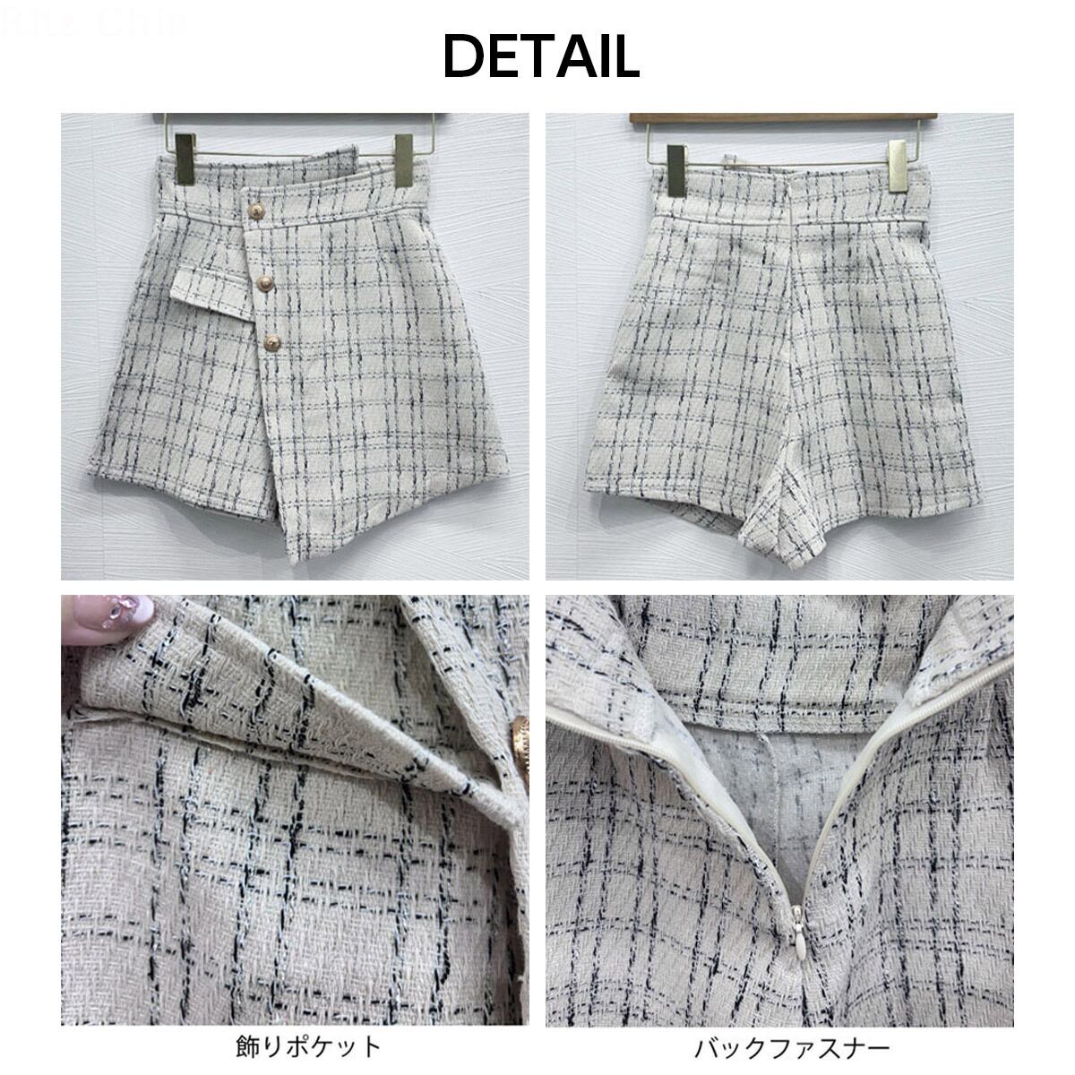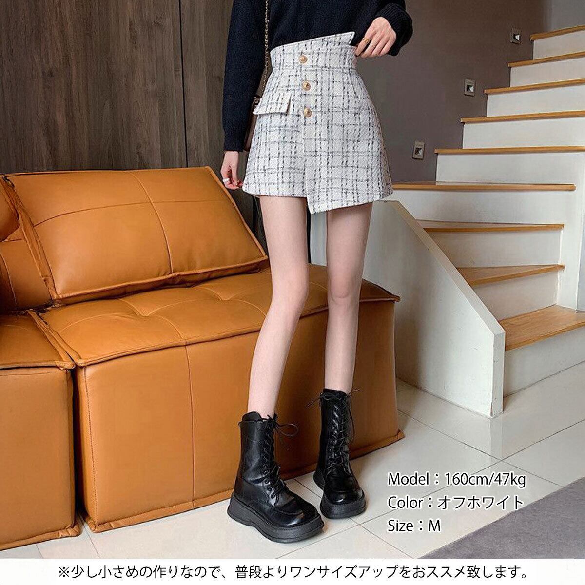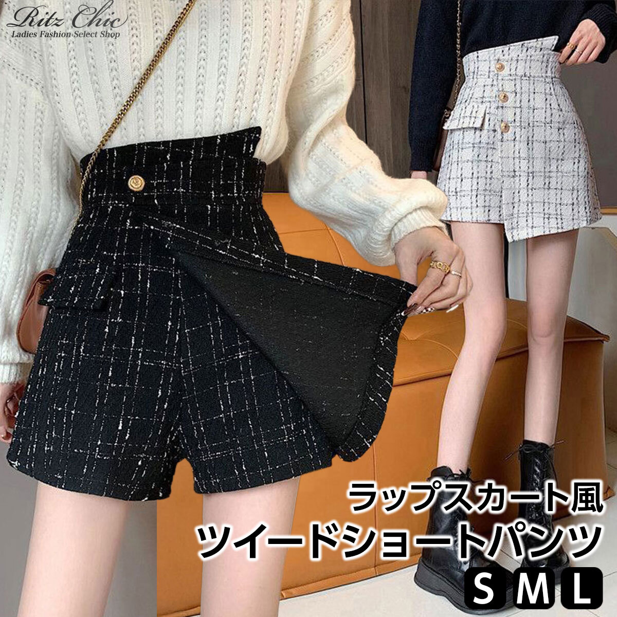 ツイード ショートパンツ レディース 秋冬 韓国 きれいめ 大人 かわいい ラップスカート風 おしゃれ カジュアル ハイウエスト アシンメトリー スカート見え キュロットパンツ 大人可愛い 大人女子