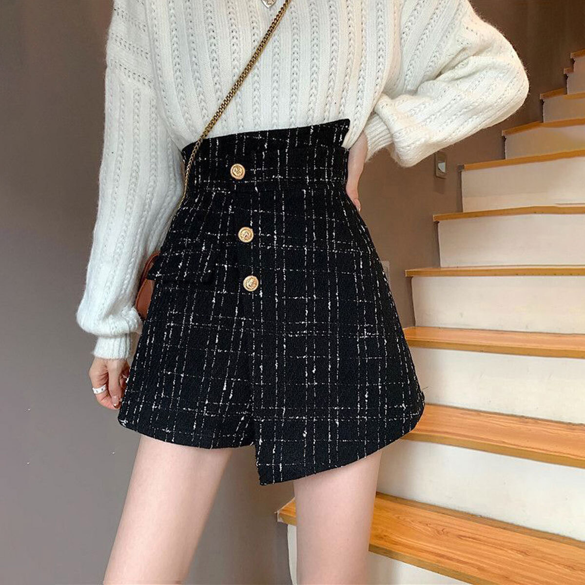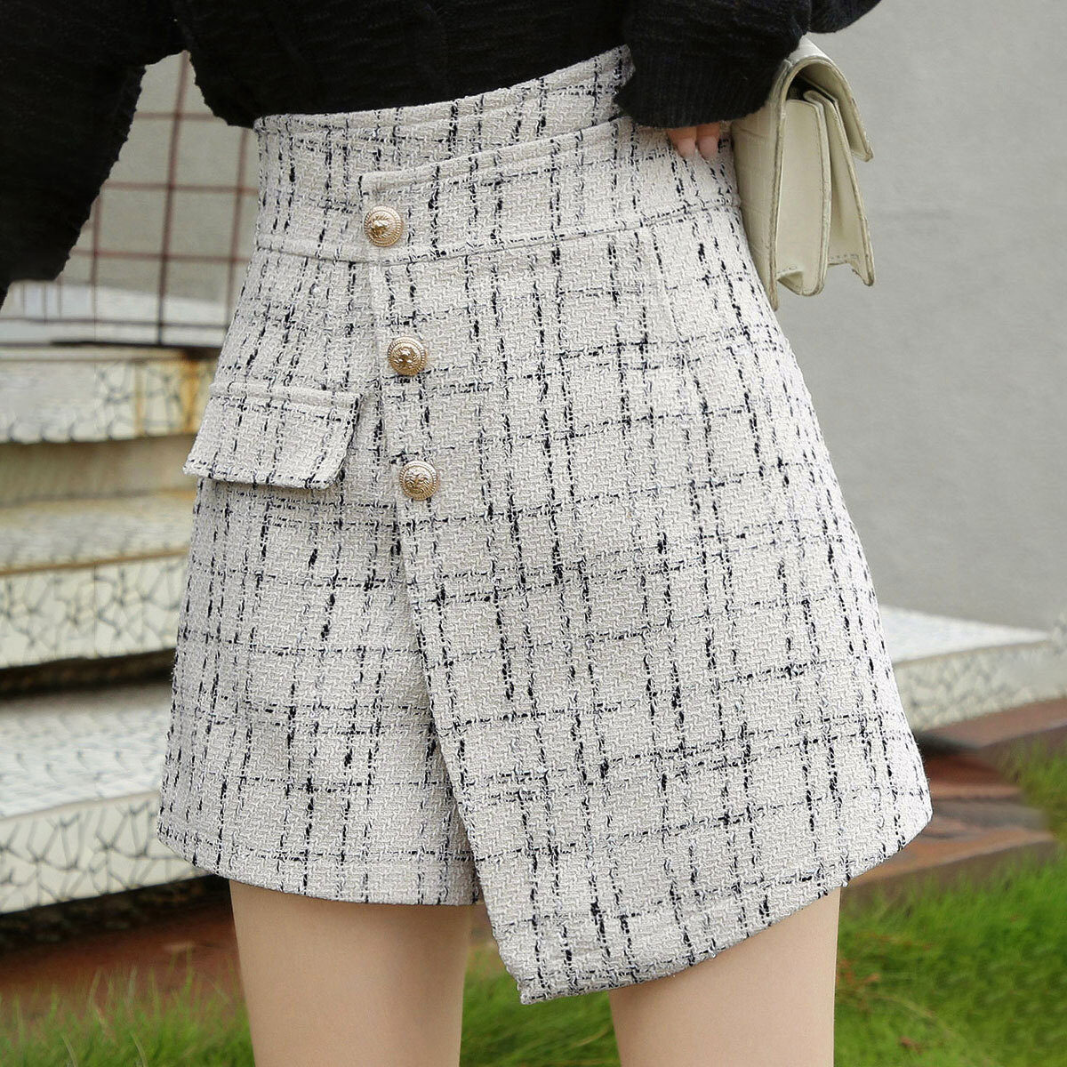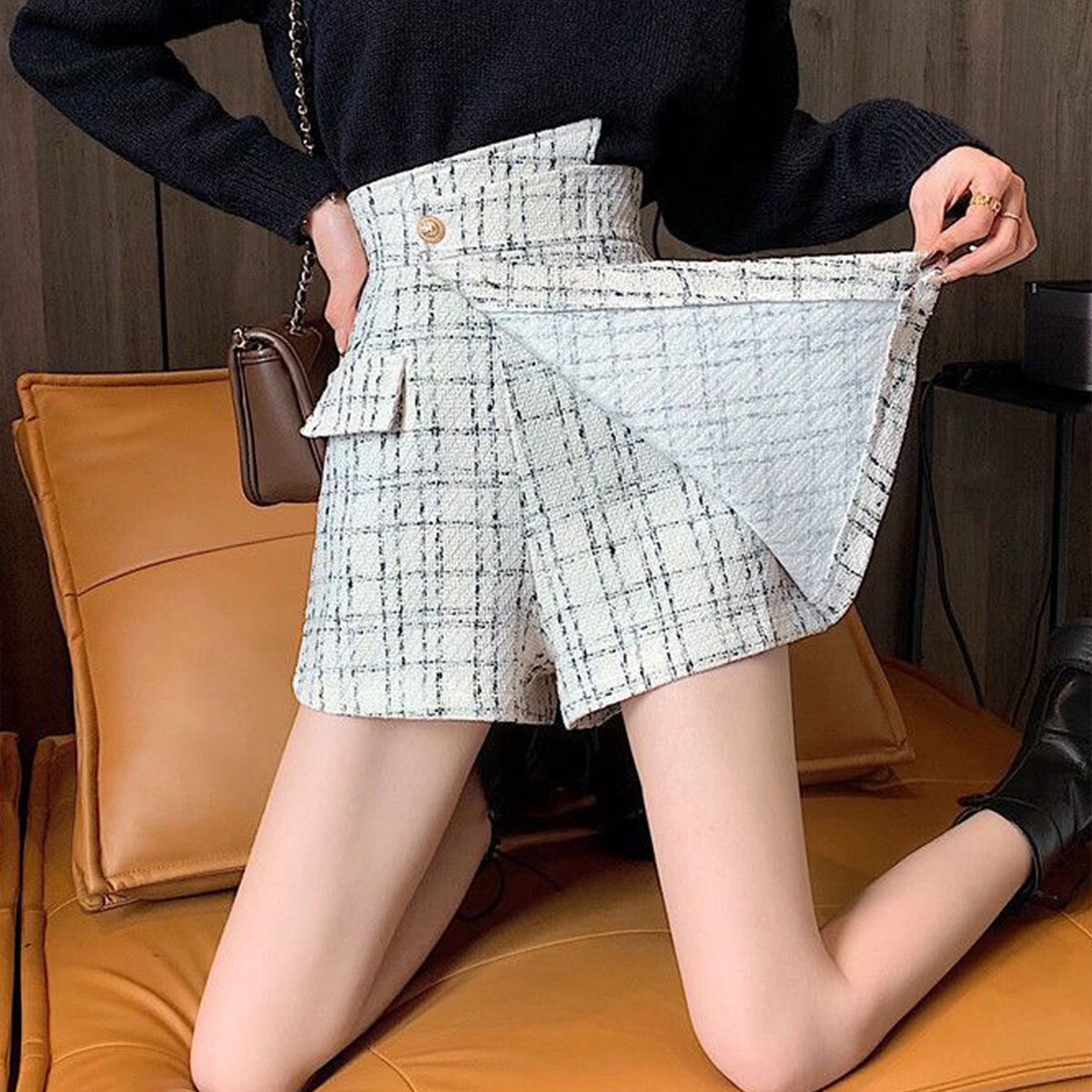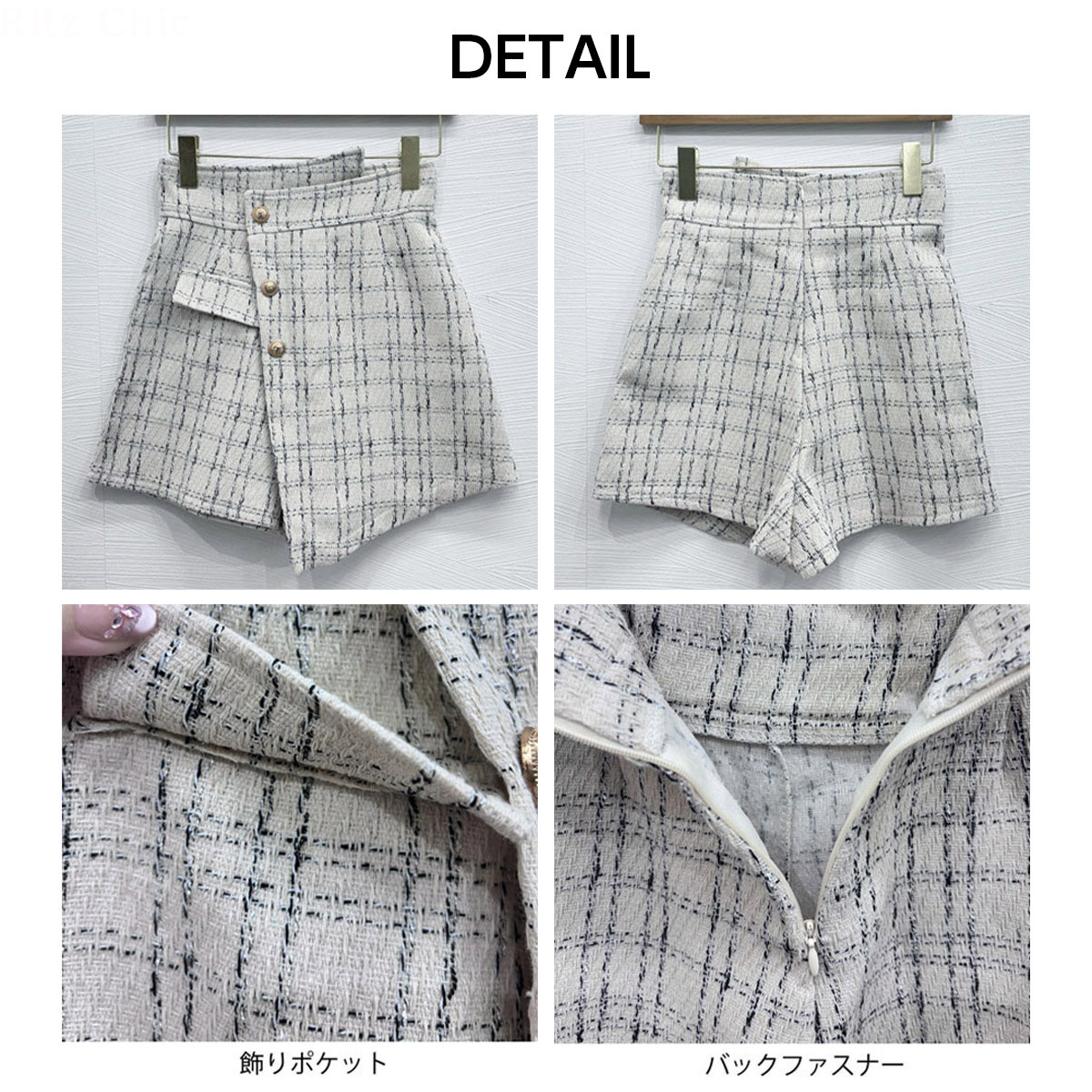 ツイード ショートパンツ レディース 秋冬 韓国 きれいめ 大人 かわいい ラップスカート風 おしゃれ カジュアル ハイウエスト アシンメトリー スカート見え キュロットパンツ 大人可愛い 大人女子