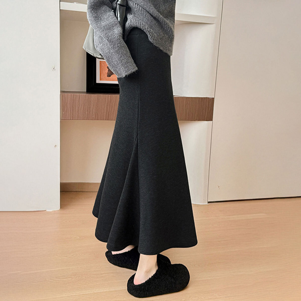 ロングスカート タイト レディース 春秋冬 韓国 フレアスカート 大人 きれいめ シンプル ハイウエスト ウエストゴム おしゃれ 無地 通勤 オフィス 大人可愛い 大人女子