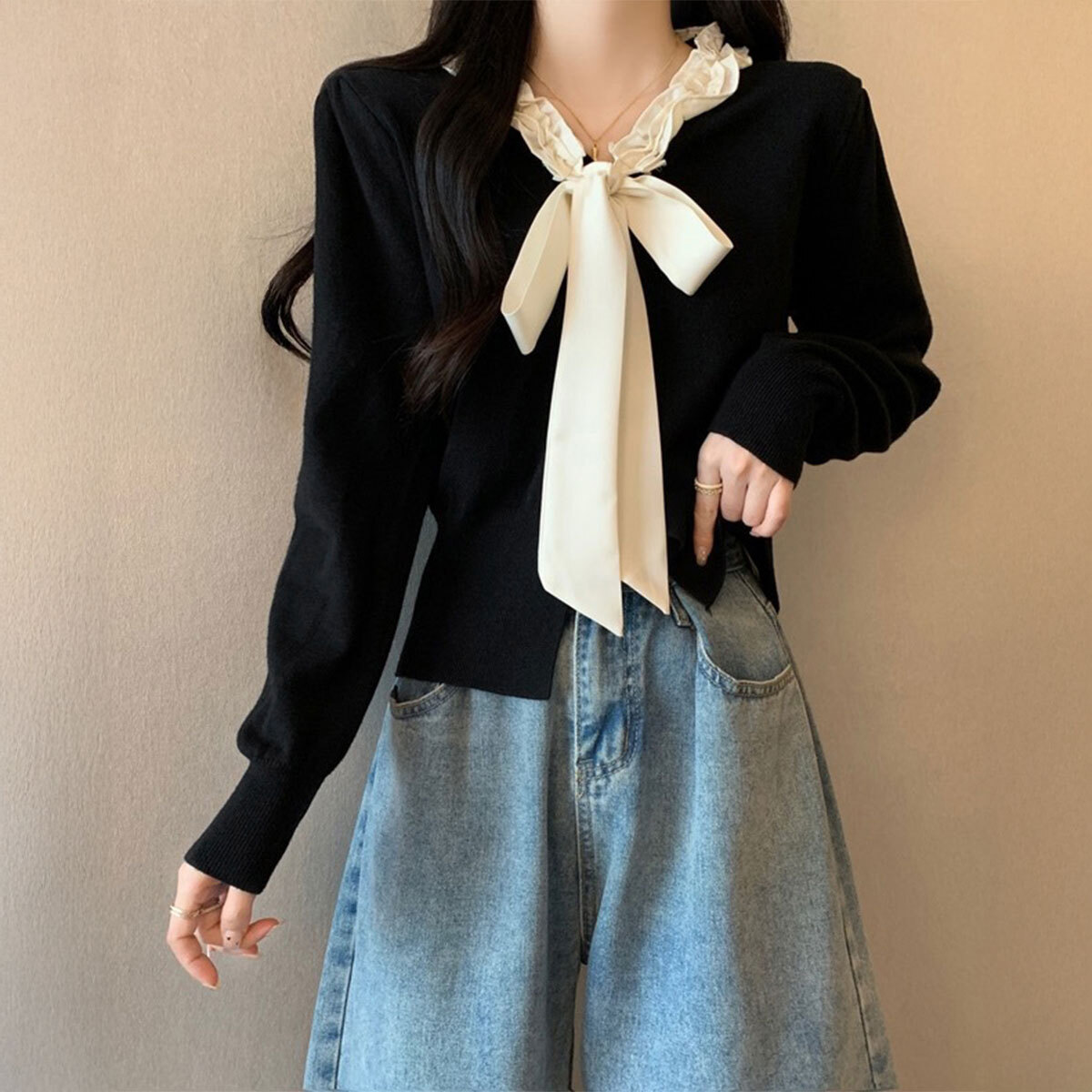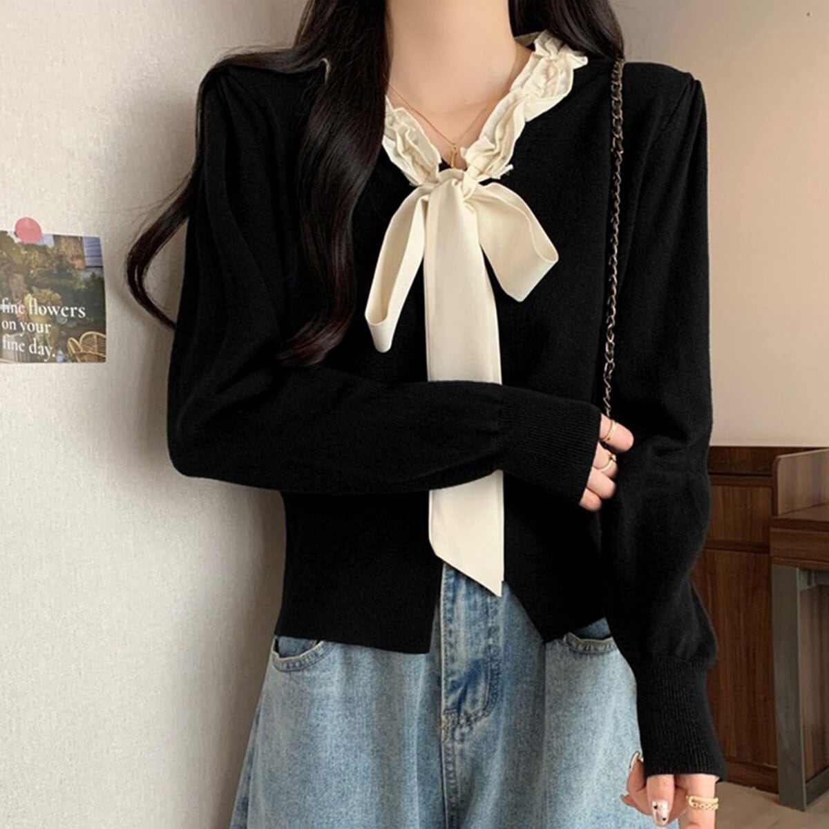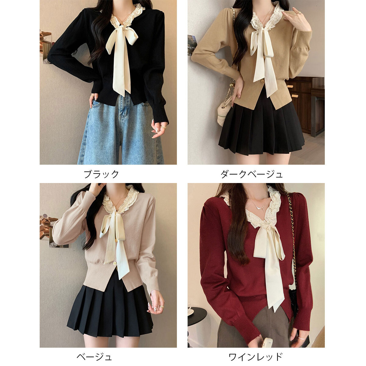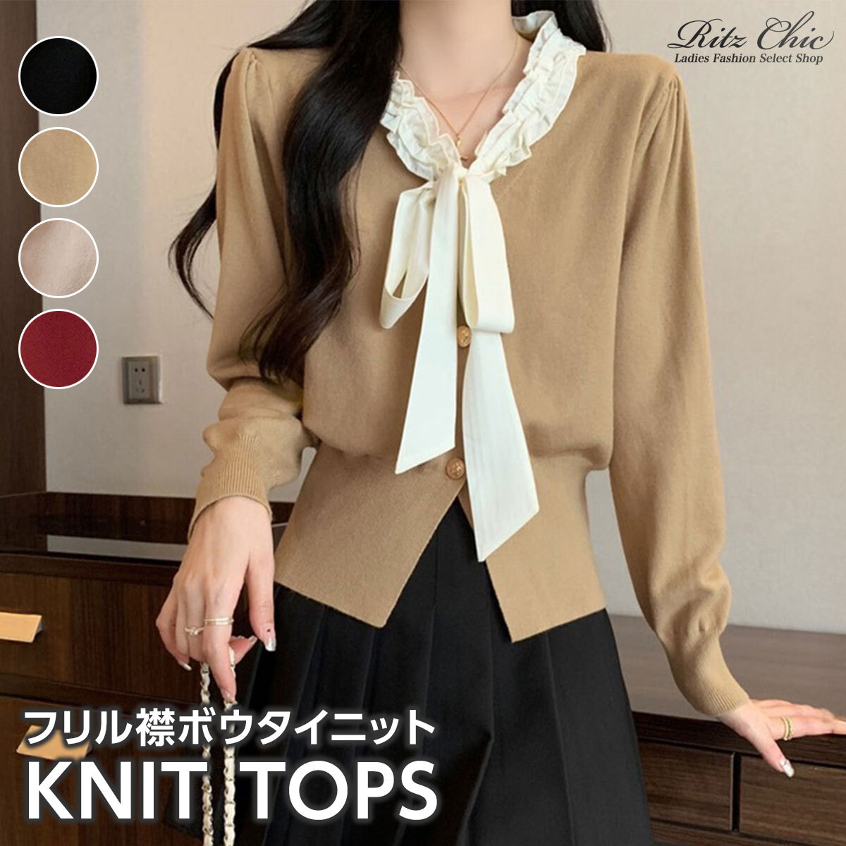 ボウタイ ニット フリル襟 レディース 春秋冬 韓国 きれいめ 大人 かわいい 通勤 フォーマル パーティー 参観日 入学式 卒業式 入園式 卒園式 カジュアル おしゃれ 大人可愛い 大人女子