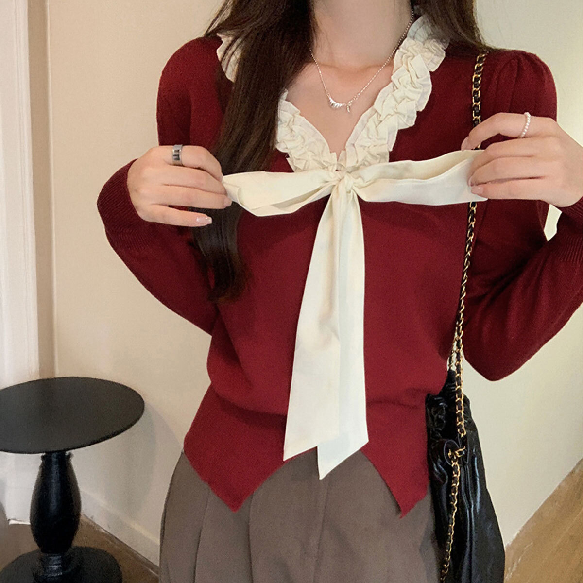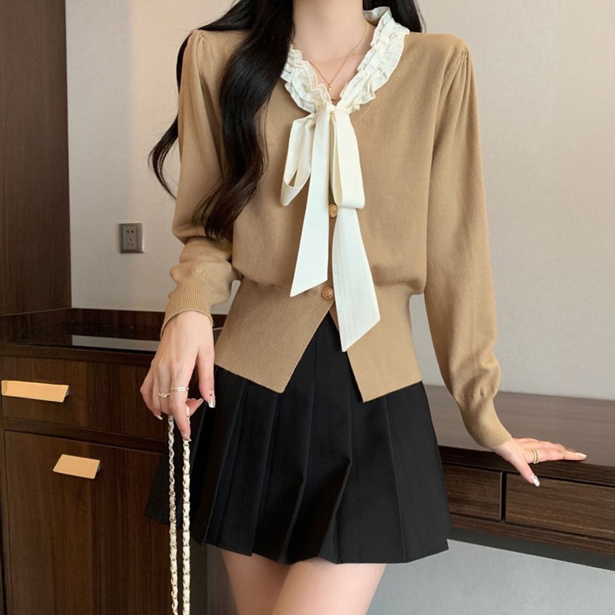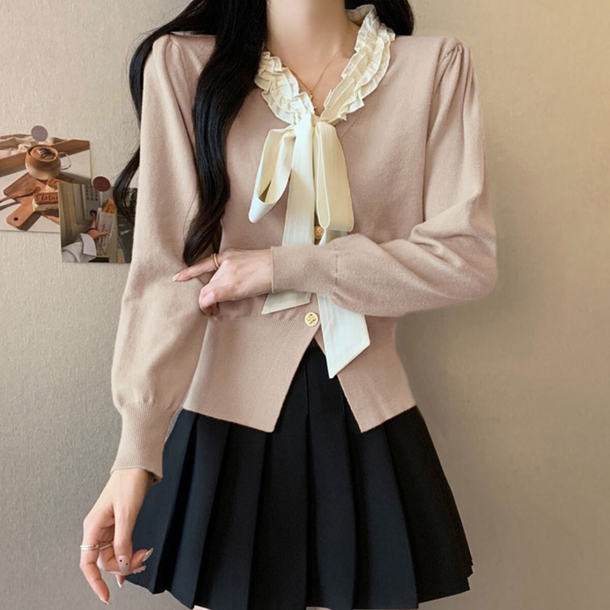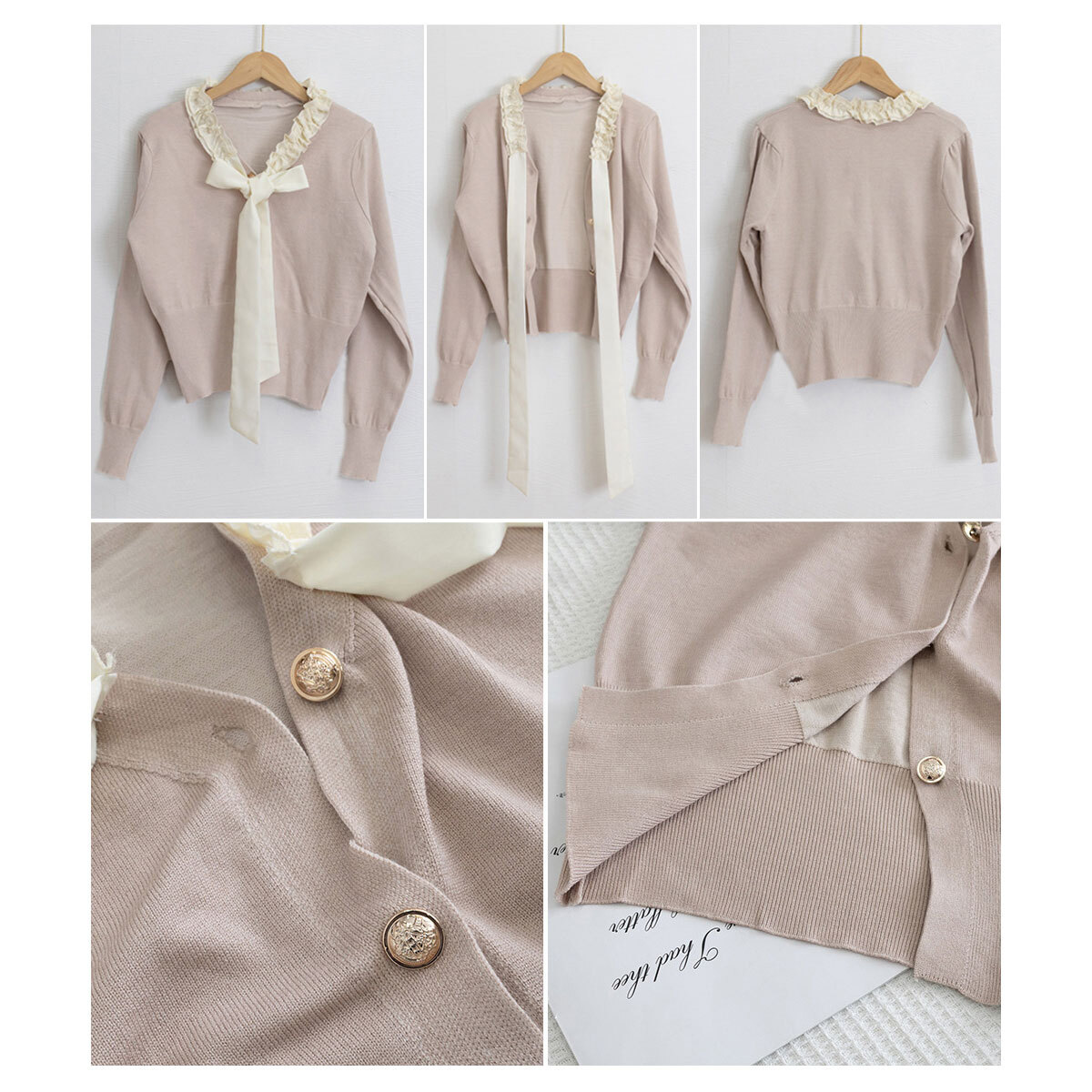 ボウタイ ニット フリル襟 レディース 春秋冬 韓国 きれいめ 大人 かわいい 通勤 フォーマル パーティー 参観日 入学式 卒業式 入園式 卒園式 カジュアル おしゃれ 大人可愛い 大人女子