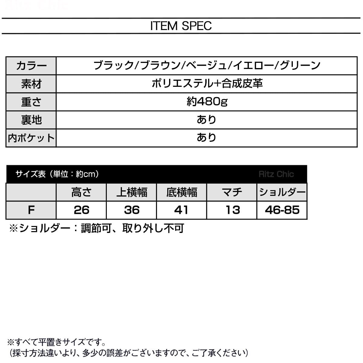 ※ショルダー:調節可能、取り外し不可