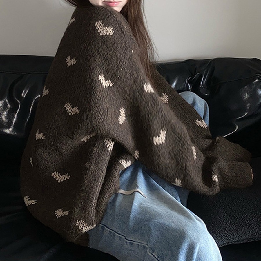 【送料無料】 ニット セーター 長袖 ハート柄 レディース 秋冬 韓国 大人 かわいい きれいめ おしゃれ カジュアル ゆったり 体型カバー レトロ フェミニン 大人可愛い 大人女子