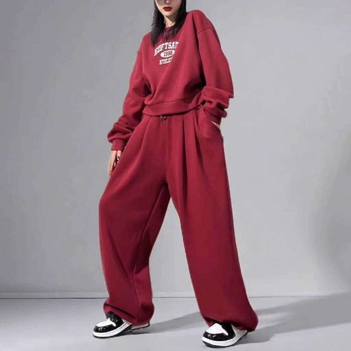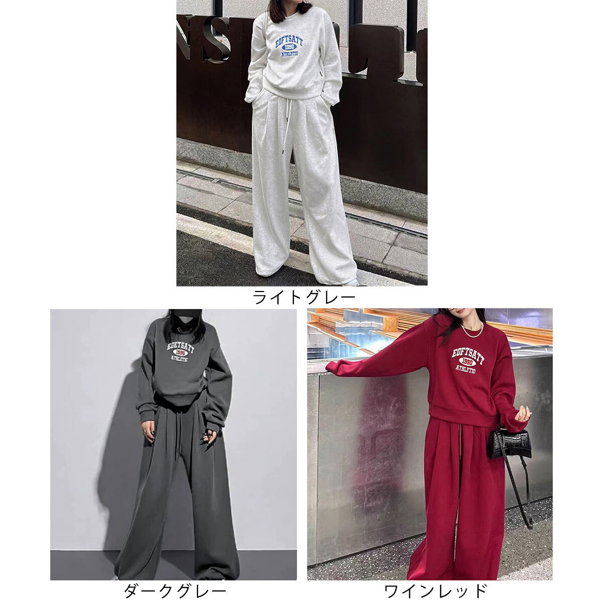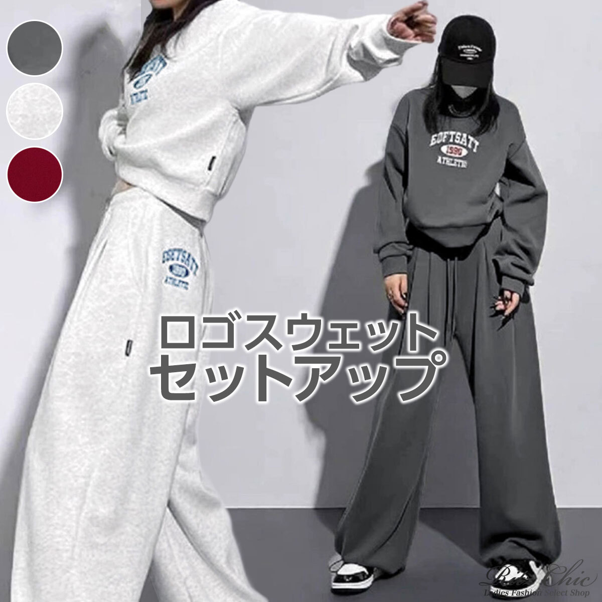 スウェット セットアップ レディース 秋冬 韓国 ストリート アメカジ 大人 カジュアル おしゃれ ロゴスウェット 2点セット トレーナー イージーパンツ ゆったり リラックス ルームウェア スポーツウェア 大人可愛い 大人女子