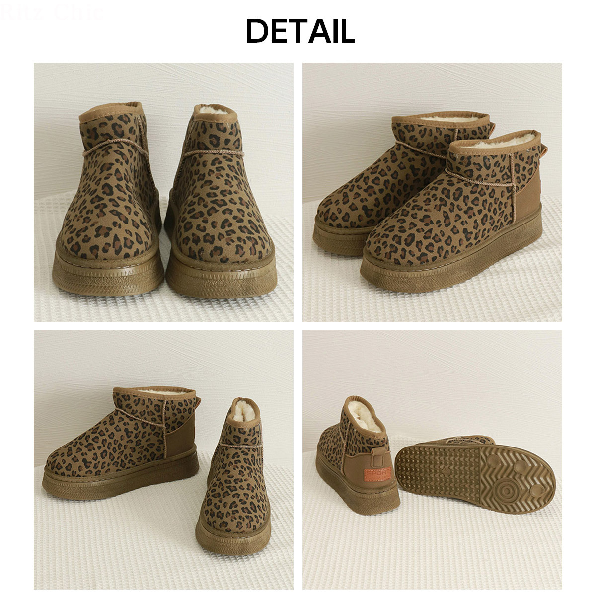 ヒョウ柄 ムートンブーツ 厚底 レディース 秋冬 韓国 豹柄 ブーツ おしゃれ 大人 カジュアル 裏起毛 防寒 保温 暖かい 歩きやすい 疲れにくい フラットソール 大人可愛い 大人女子