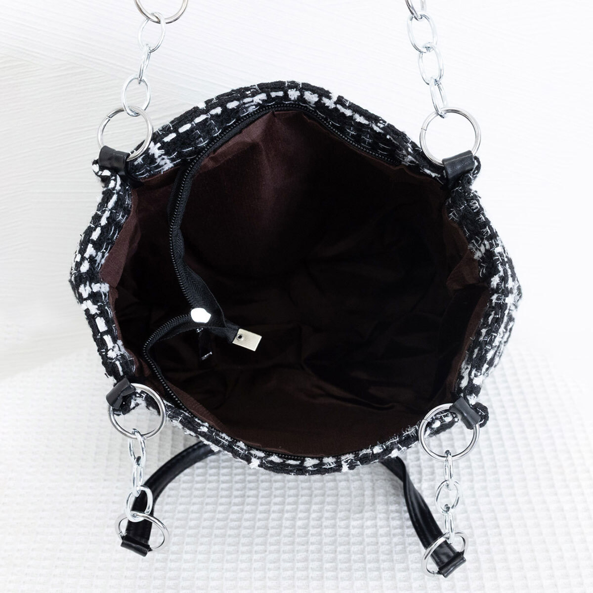 立体感のある質感とモノトーンのチェック柄が、きれいめな印象を演出し、普段のカジュアルなお出かけやショッピングにはもちろん、通勤や通学などデイリーに活躍してくれます。