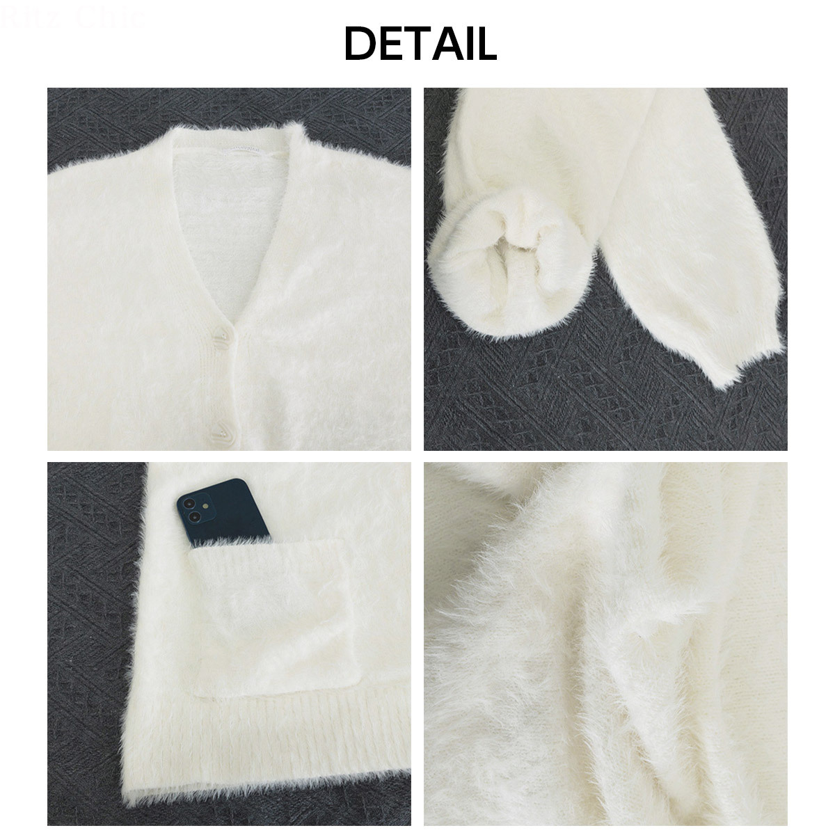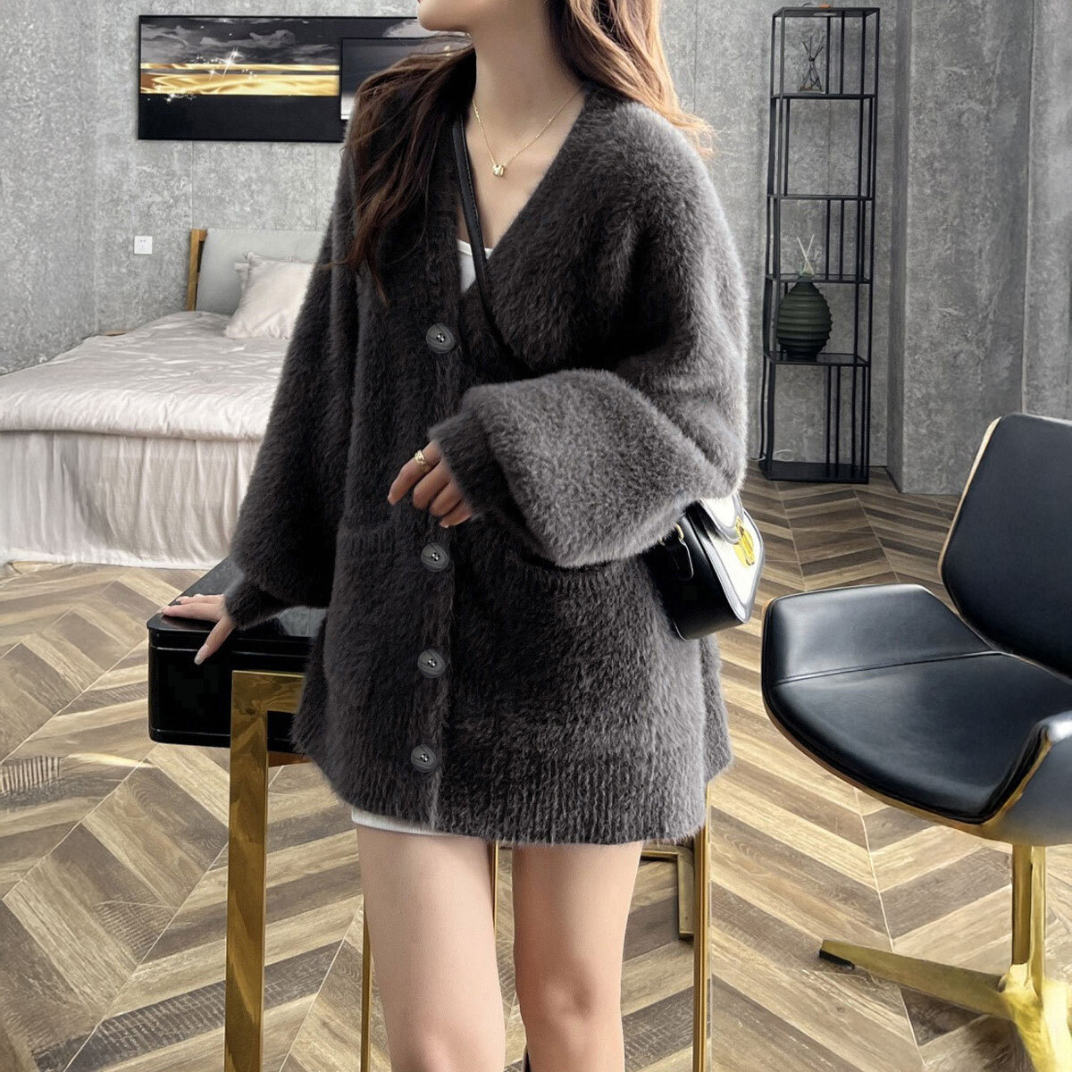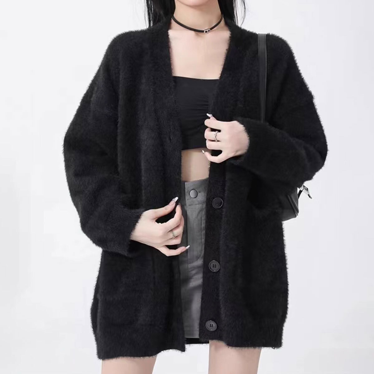 シャギーニット カーディガン Vネック レディース 秋冬 韓国 ニット ゆったり 体型カバー 大人 かわいい きれいめ カジュアル おしゃれ 重ね着 ロング丈 羽織り トップス 大人可愛い 大人女子