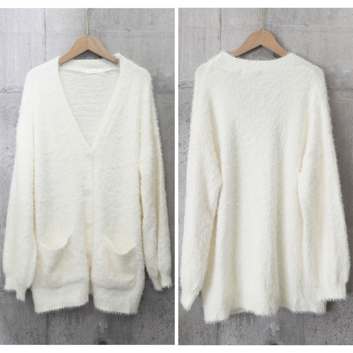 ふわふわとしたモヘアタッチ素材で、トレンド感が抜群のシャギーニットカーディガンです。