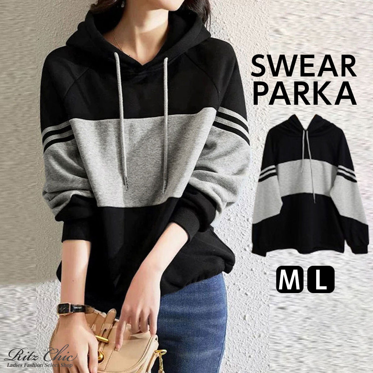 スウェット パーカー フード付き レディース 秋冬 韓国 大人 カジュアル おしゃれ ストリート アメカジ ゆったり 体型カバー バイカラー トップス トレーナー 大人可愛い 大人女子