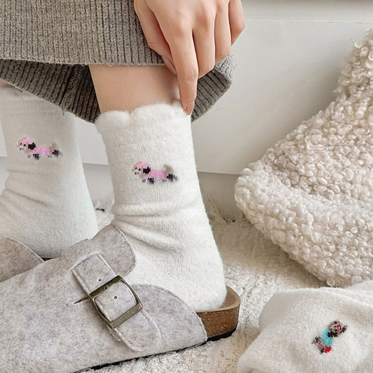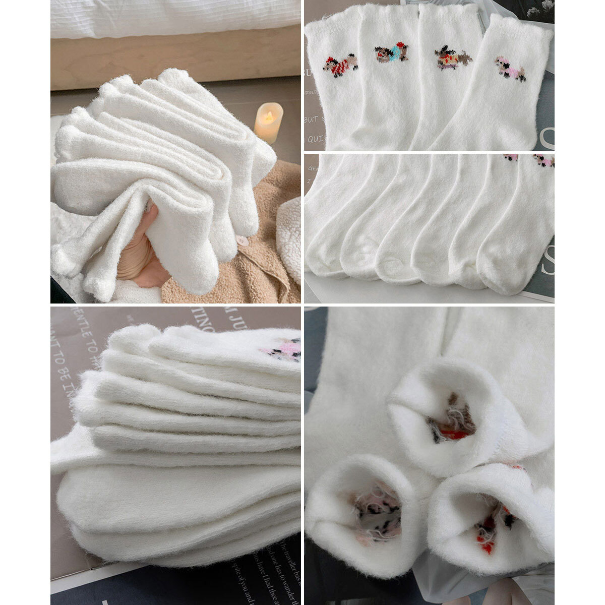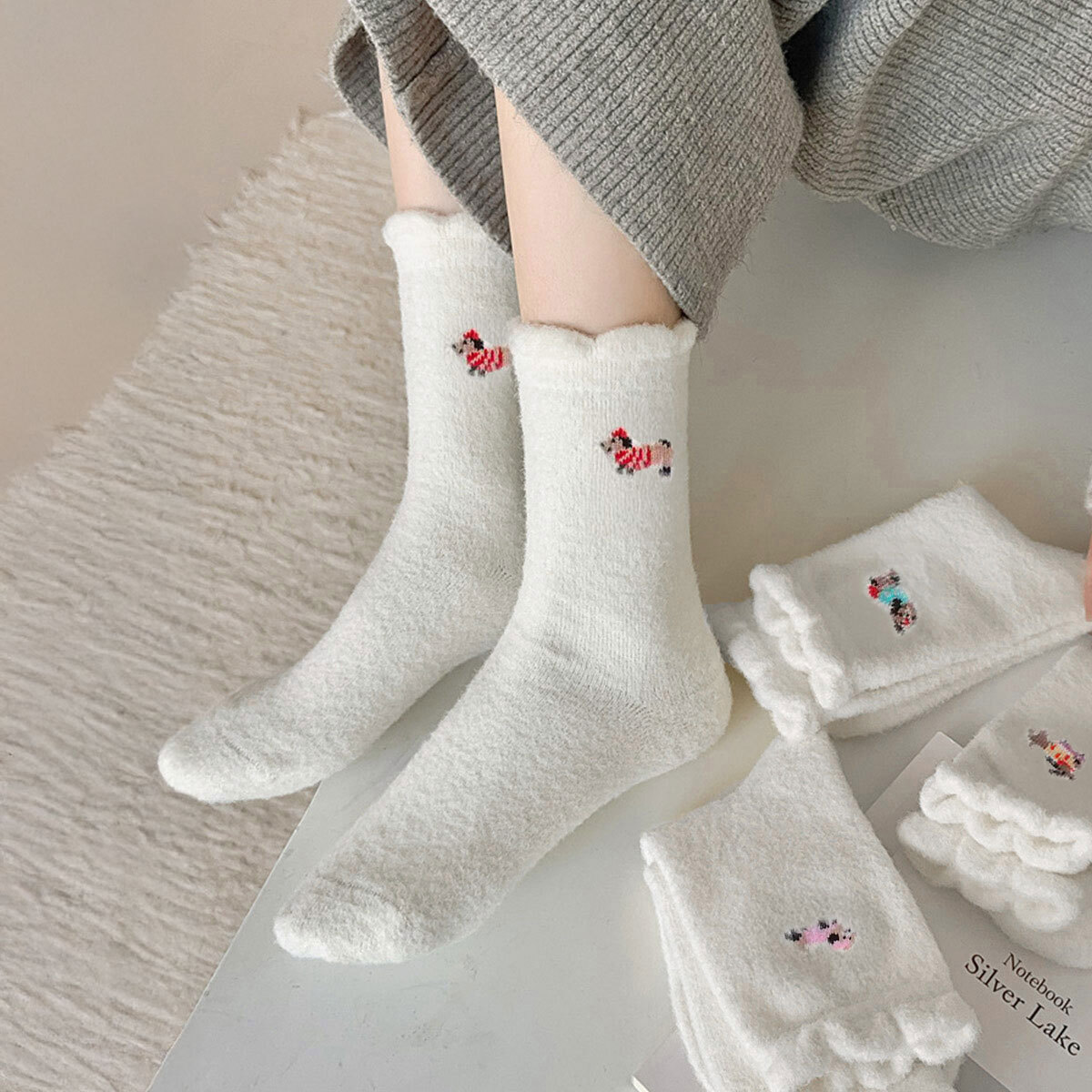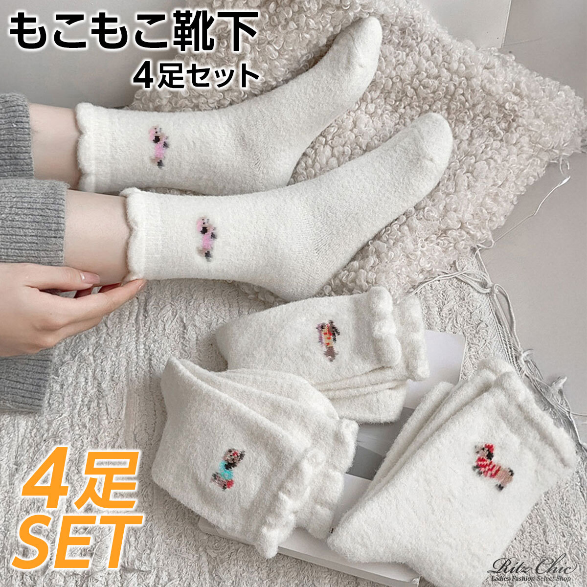 もこもこ 靴下 4足セット レディース 春秋冬 韓国 ソックス 大人 かわいい おしゃれ ワンポイント 犬柄 アニマル柄 ルームソックス 暖かい フリル 大人可愛い 大人女子