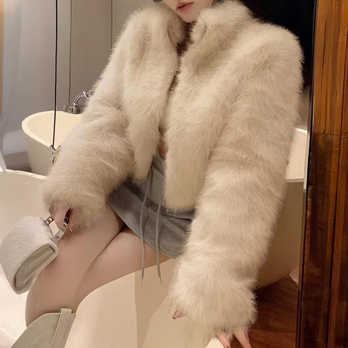 上質なフェイクファーを使用し、優雅でお洒落なデザインに仕上げたショート丈のファージャケットです。