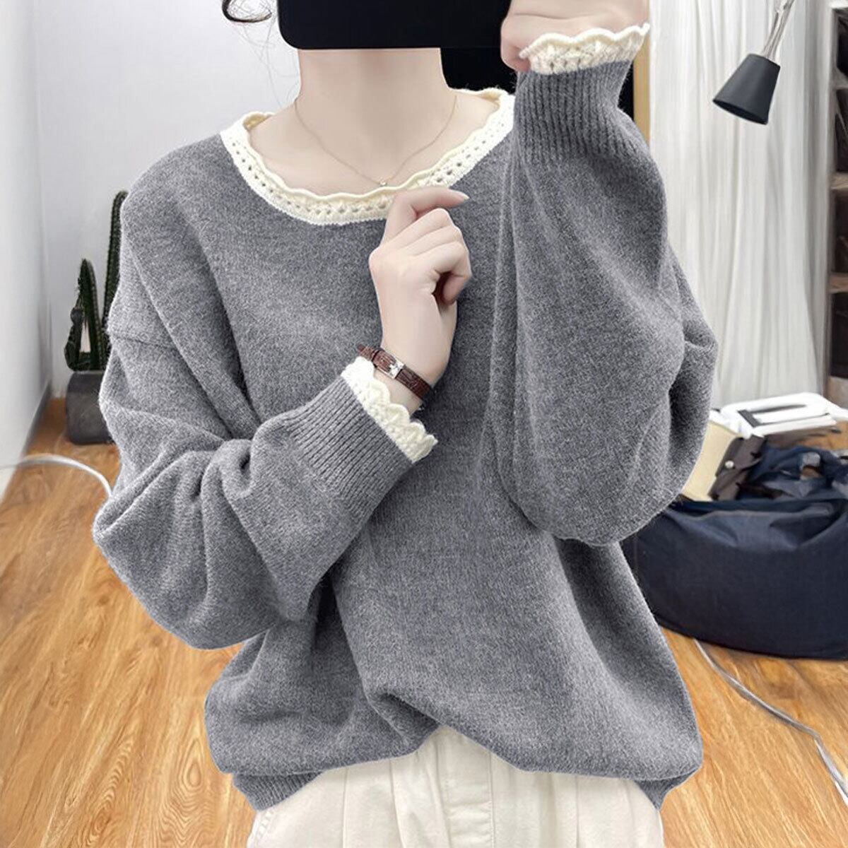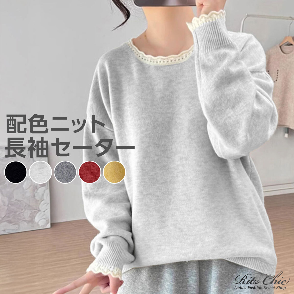 配色ニット 長袖 セーター レディース 春秋冬 韓国 きれいめ シンプル 大人 おしゃれ カジュアル ニット 暖かい ゆったり ニットウェア 体型カバー 大人可愛い 大人女子