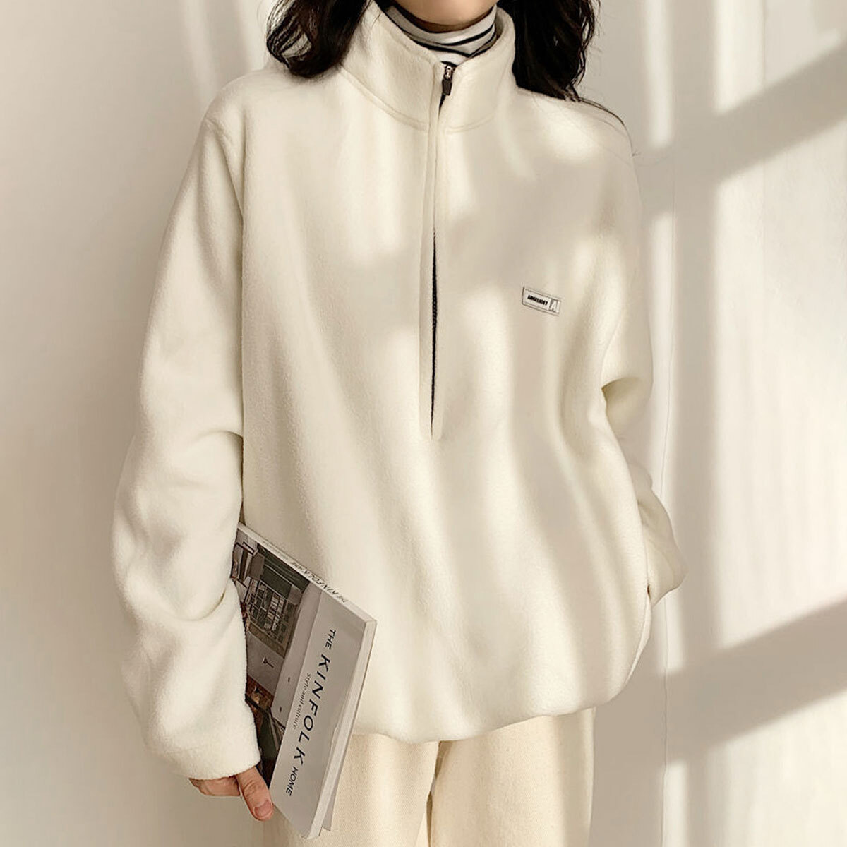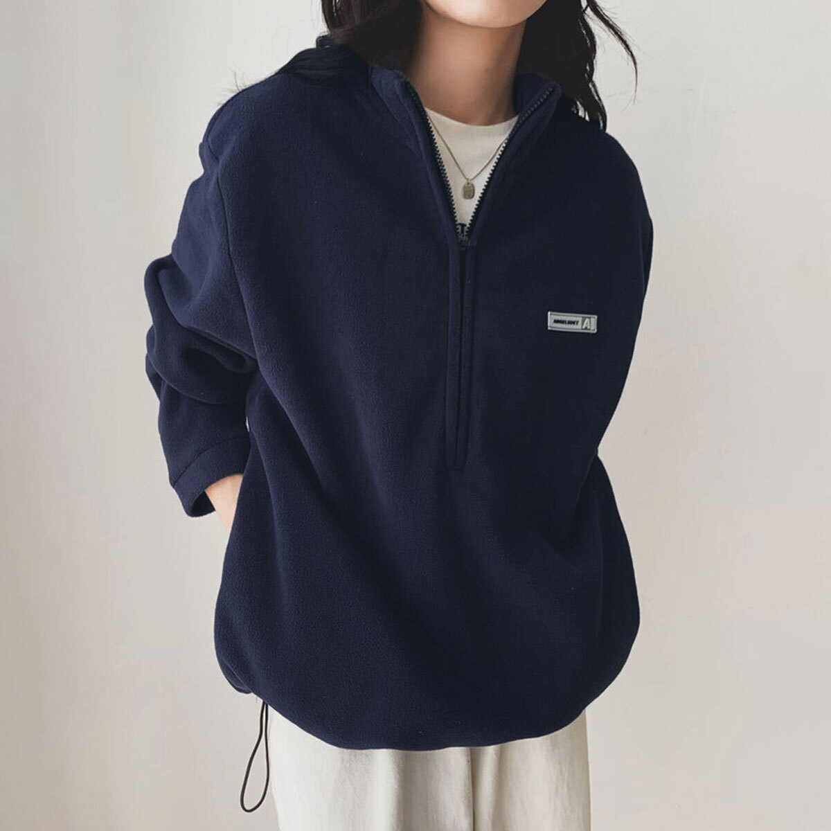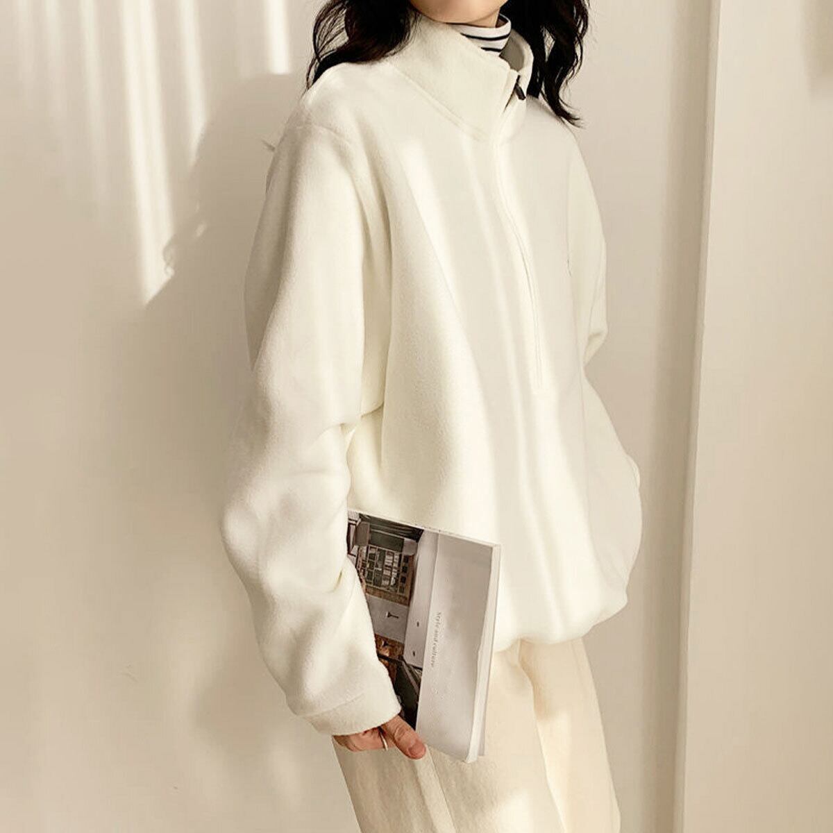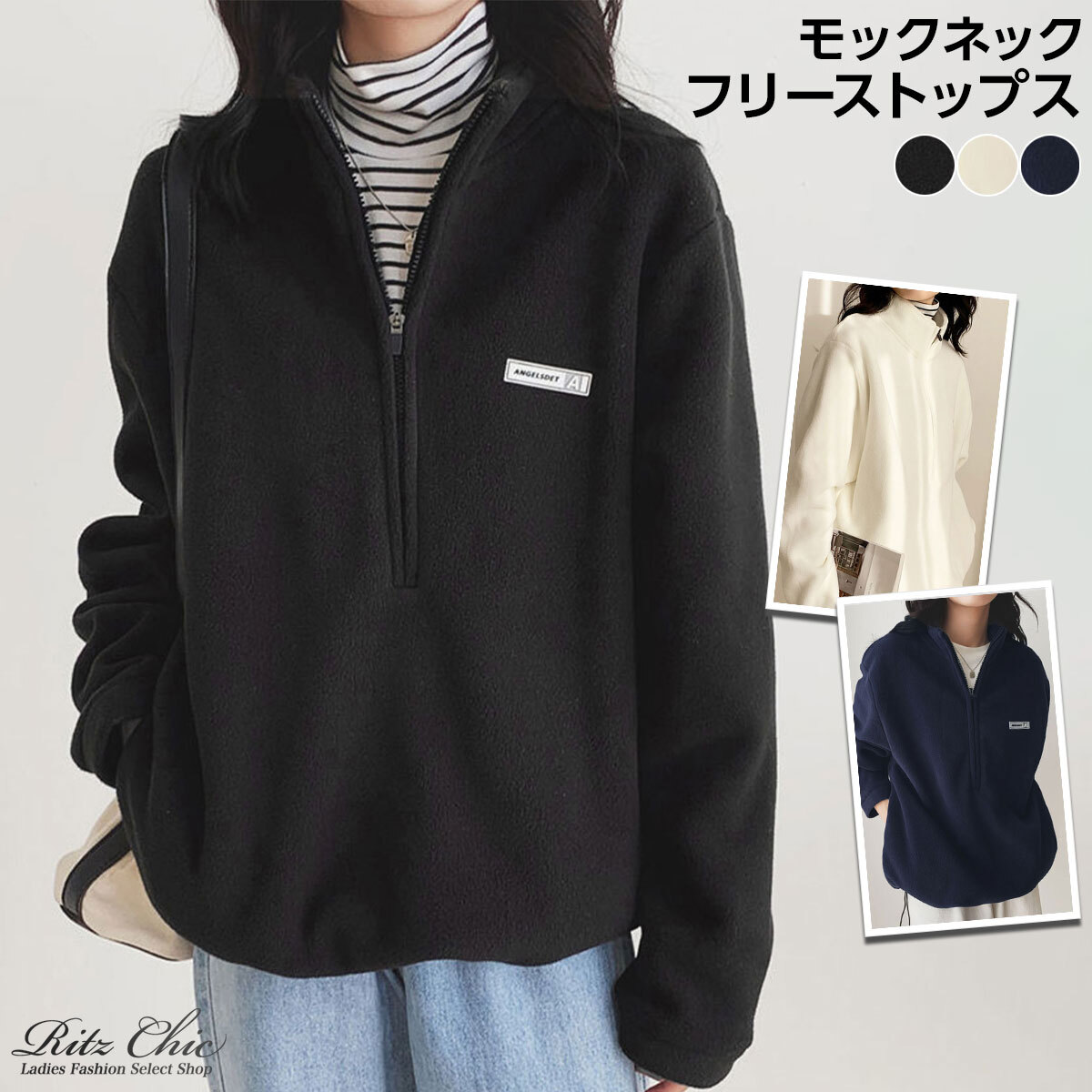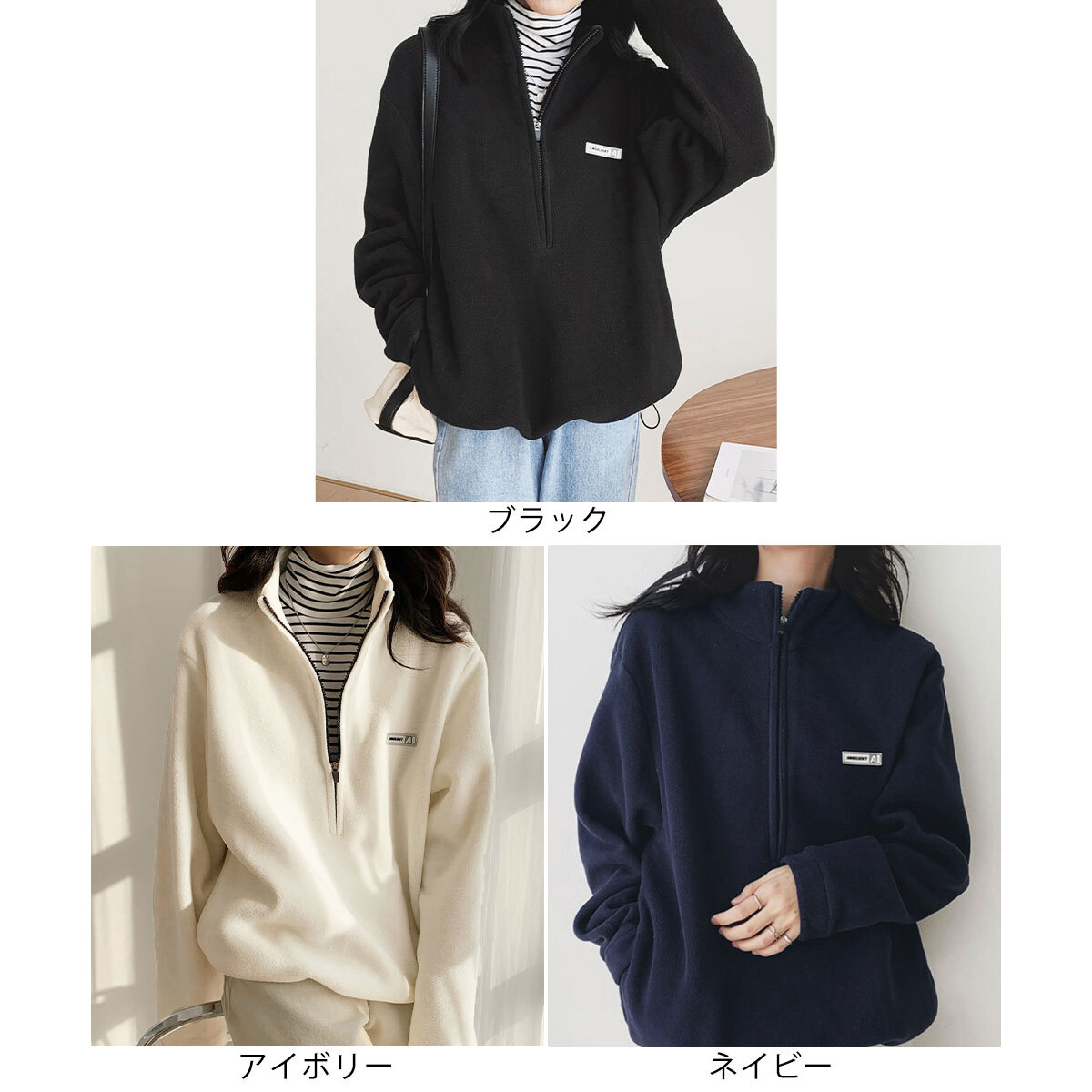 フリース トレーナー ハーフジップ レディース 秋冬 韓国 大人 カジュアル おしゃれ モックネック シンプル 防寒 保温 暖かい 体型カバー ゆったり 起毛 大人可愛い 大人女子