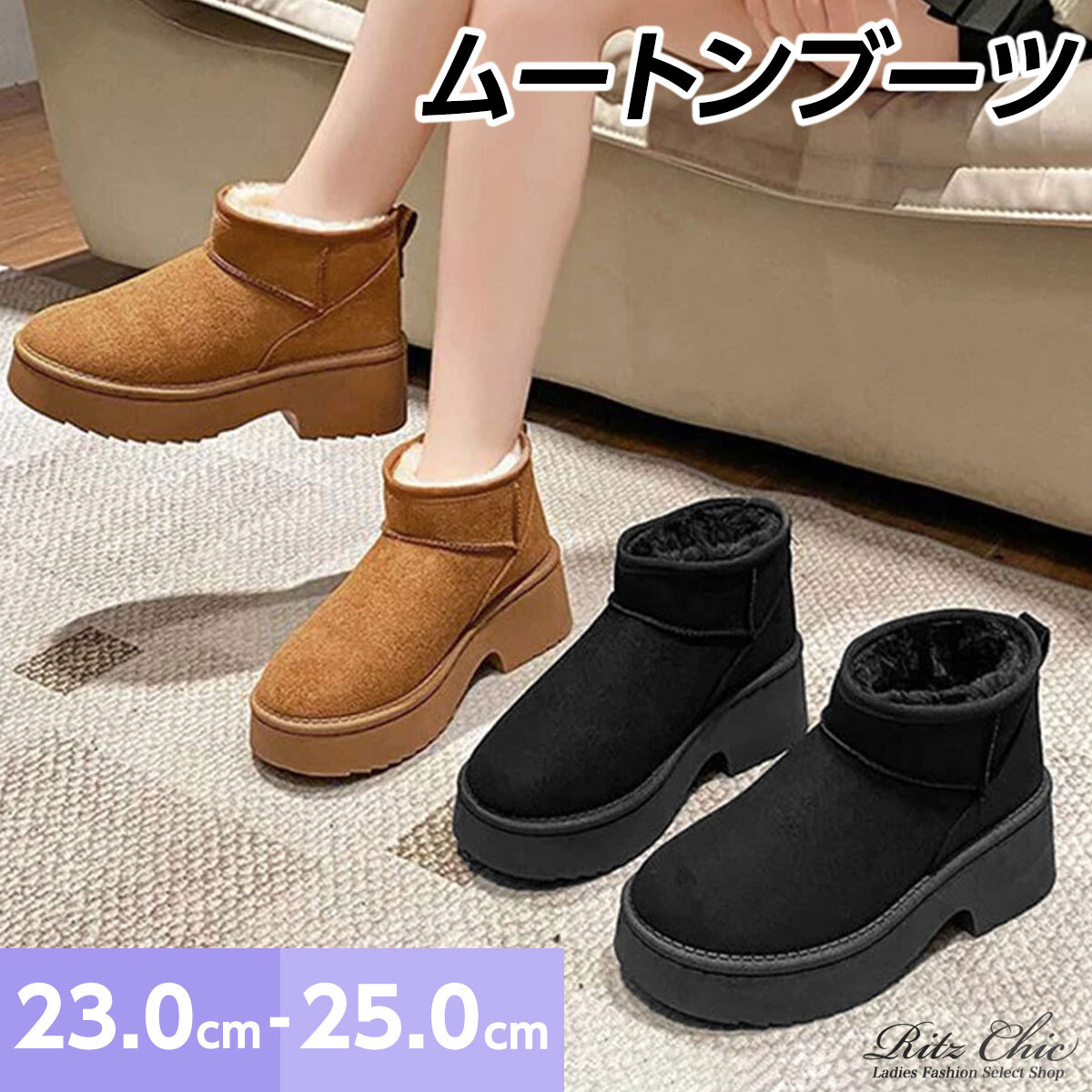 ムートンブーツ 厚底 チャンキーヒール レディース 秋冬 韓国 ブーツ おしゃれ 大人 かわいい 防寒 保温 履きやすい 歩きやすい 裏ボア もこもこ 大人可愛い 大人女子