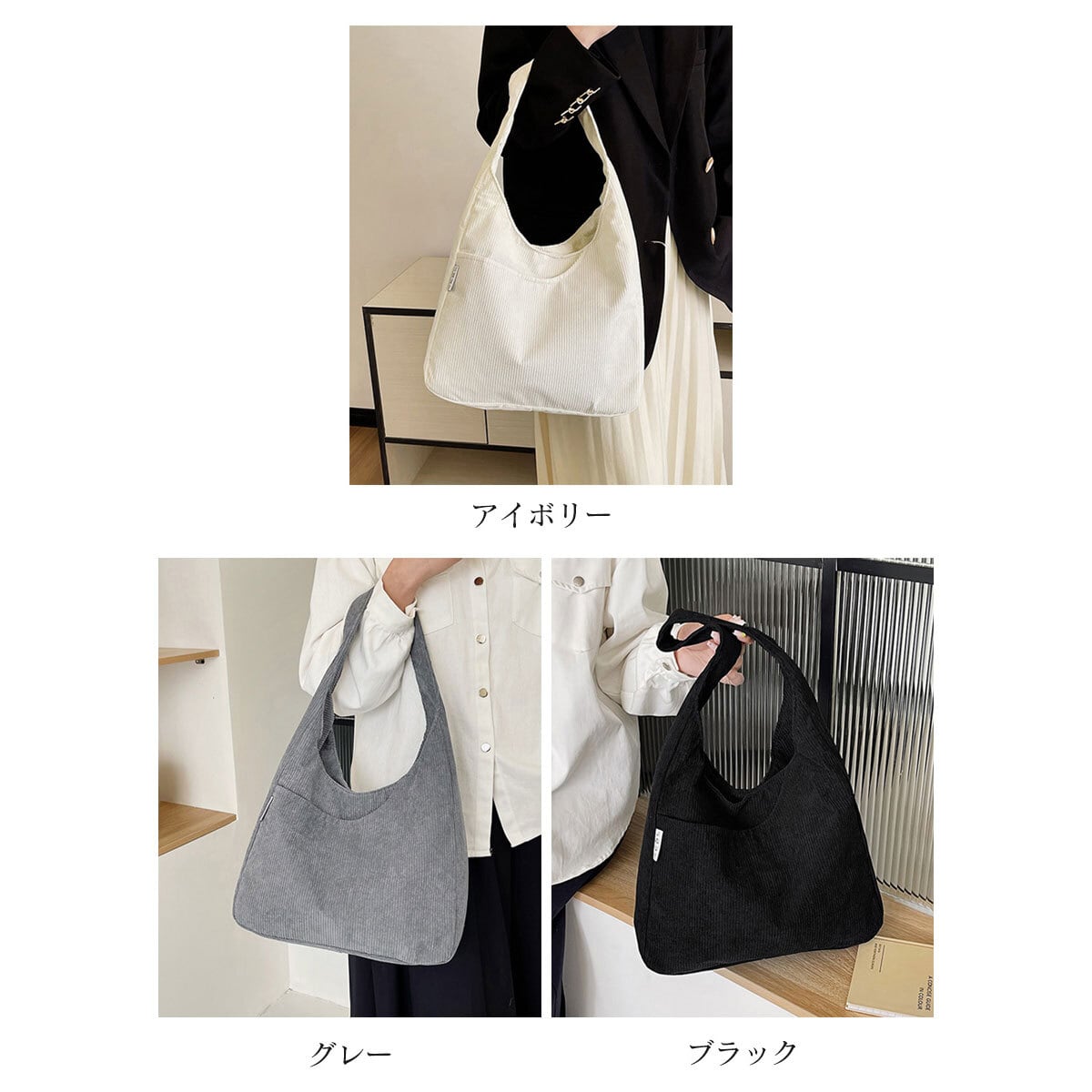 暖かみのあるコーデュロイ素材を使用し、秋冬のシーズンにぴったりな印象を演出してくれるワンショルダーのトートバッグです。