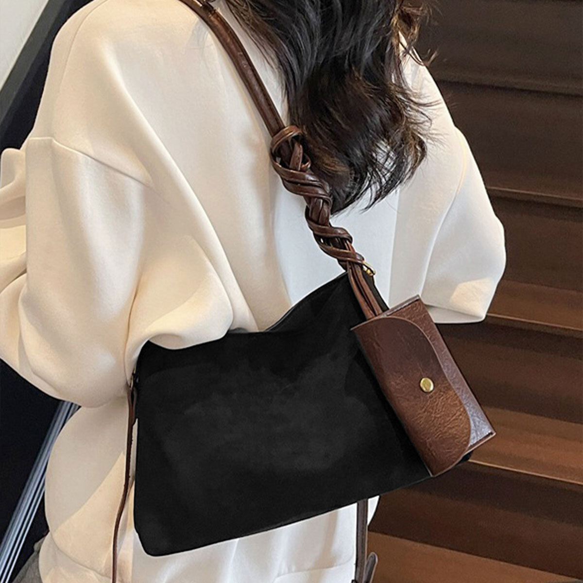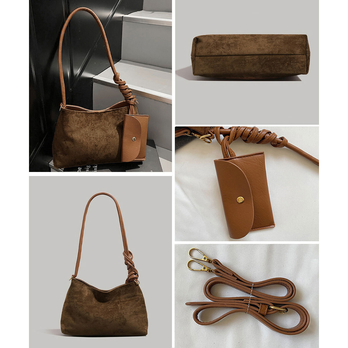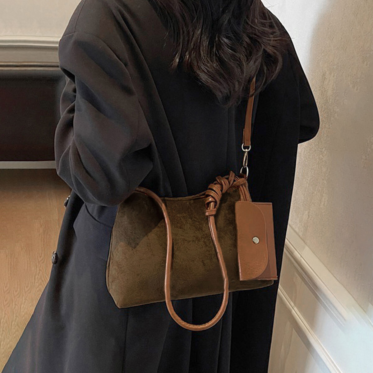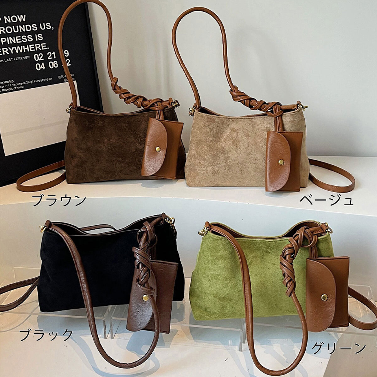 スエード調 ショルダー バッグ ポーチ付き レディース 韓国 小さい コンパクト 通勤 軽量 PUレザー 大人 きれいめ シンプル カジュアル OL ビジネス スクエアバッグ 上品 レトロ おしゃれ 大人可愛い 大人女子