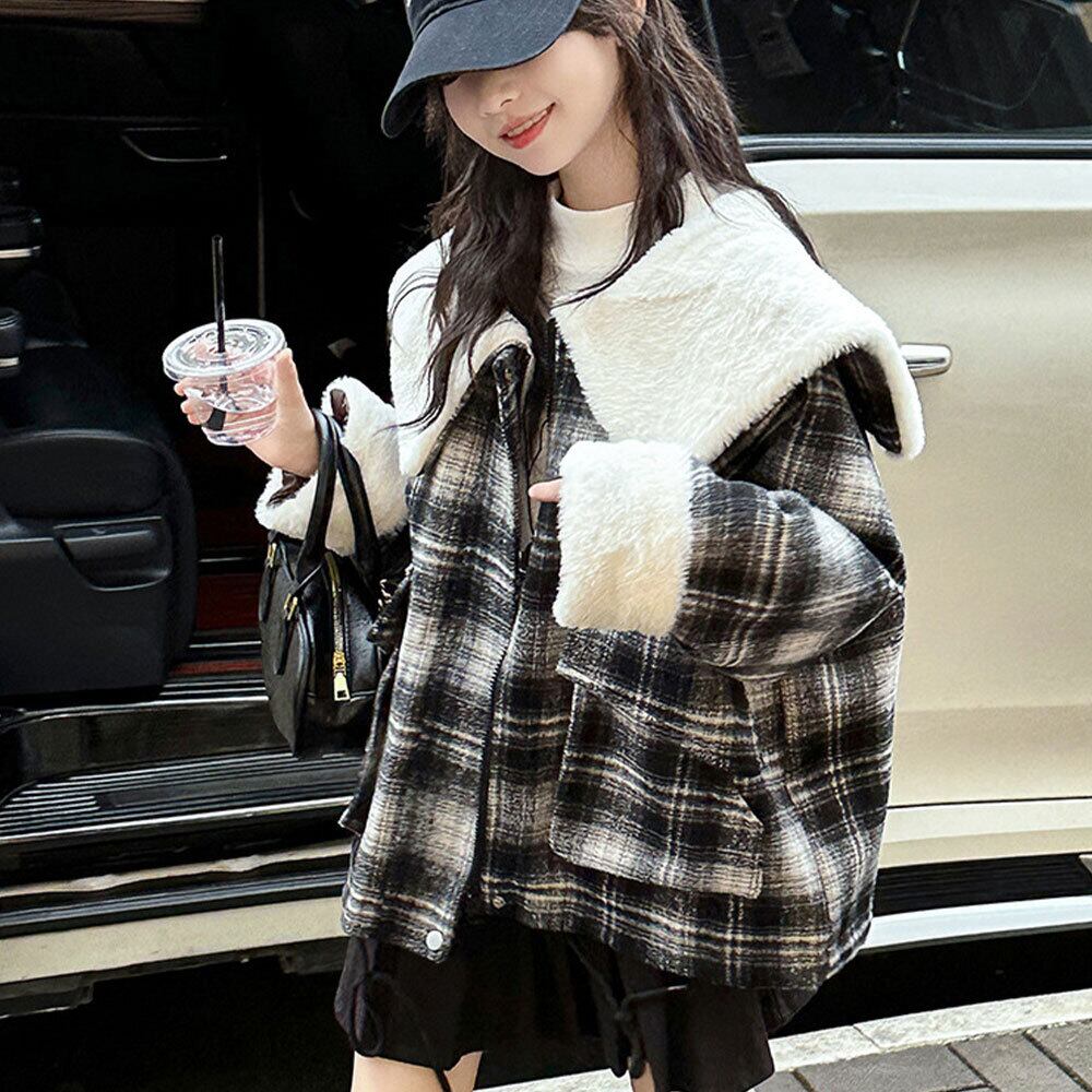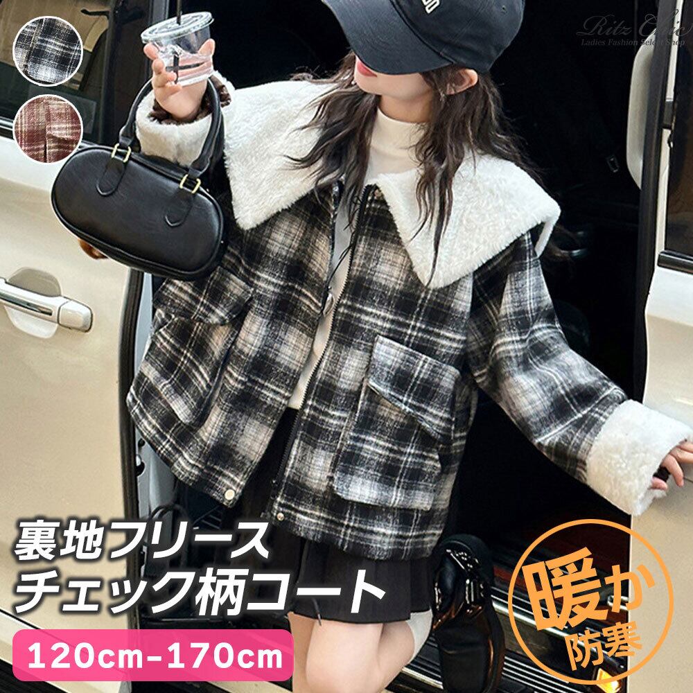 【送料無料】 子供服 キッズ 女の子 秋冬 アウター 韓国 チェック柄 コート 裏地付き フリース おしゃれ かわいい 小学生 中学生 通学 ラペルコート 大人可愛い 大人女子