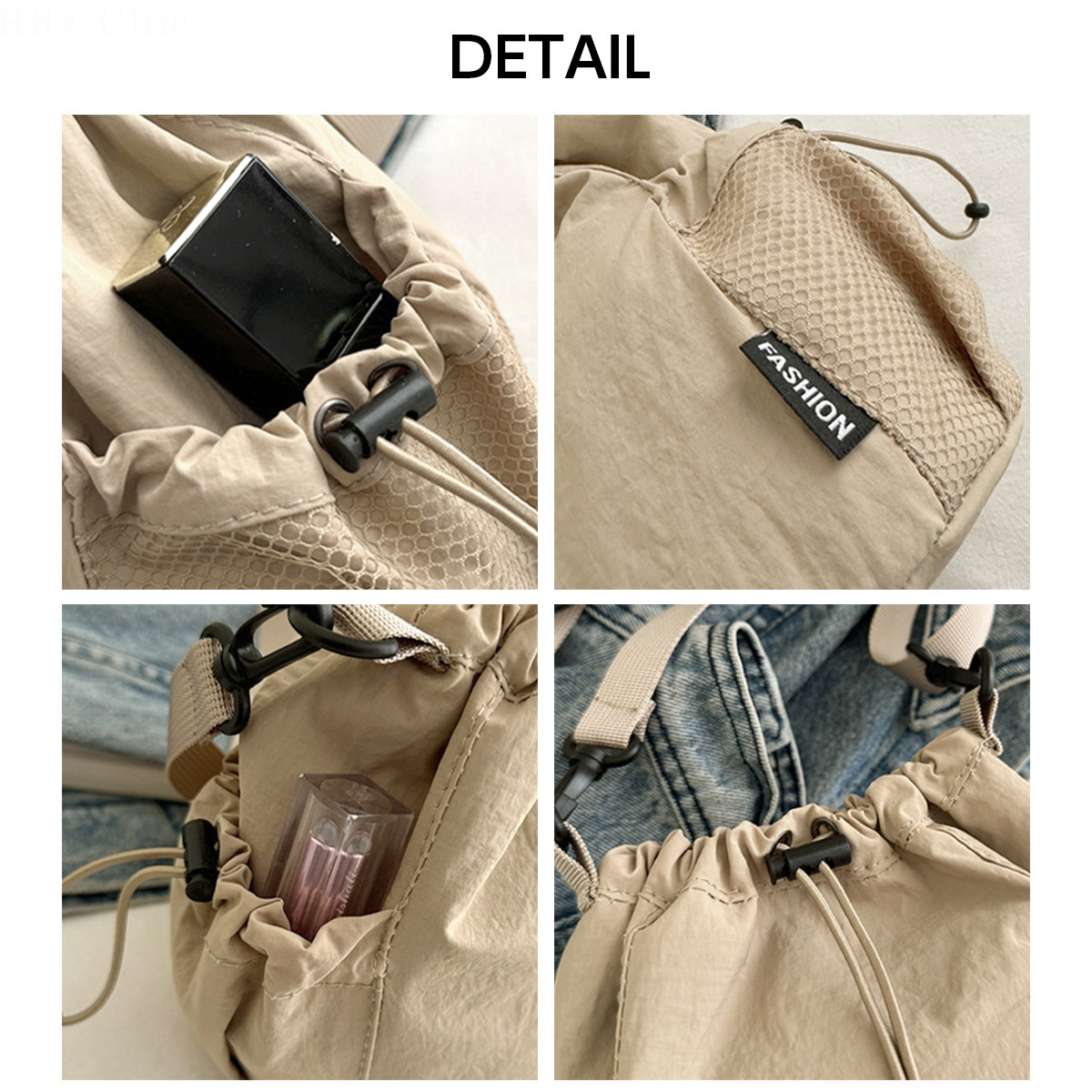 長さの調節が可能なショルダーや、ドローストリング仕様により使い方も多彩で、コーデやシーンに合わせて様々なスタイルを楽しめます。
