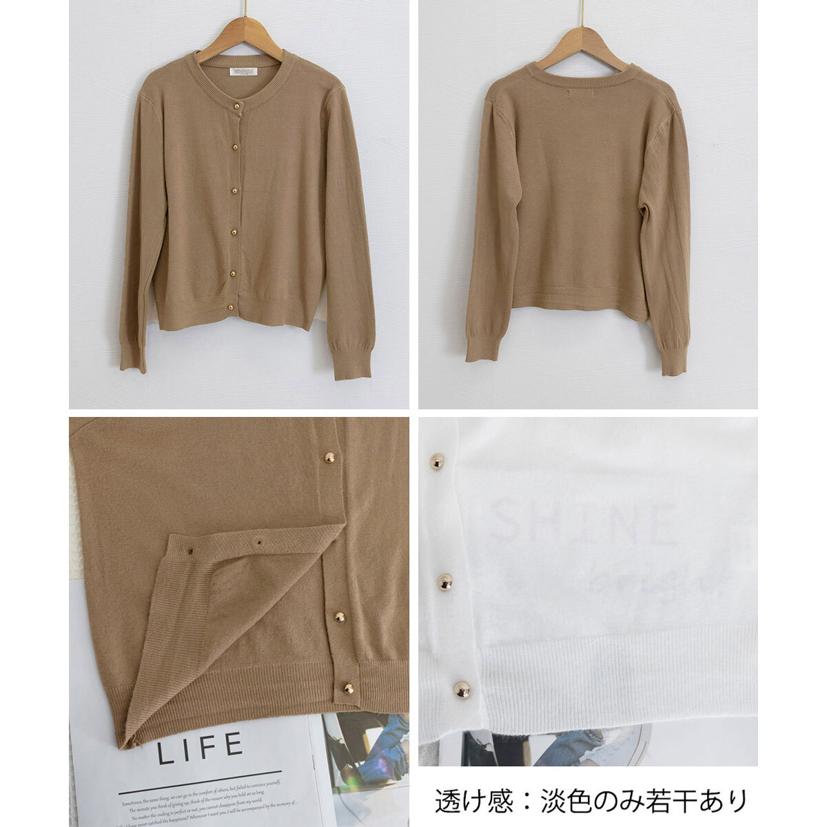 柔らかい薄手のニット生地で、春夏秋冬と1年中オールシーズンに着回していただける長袖のニットカーディガンです。