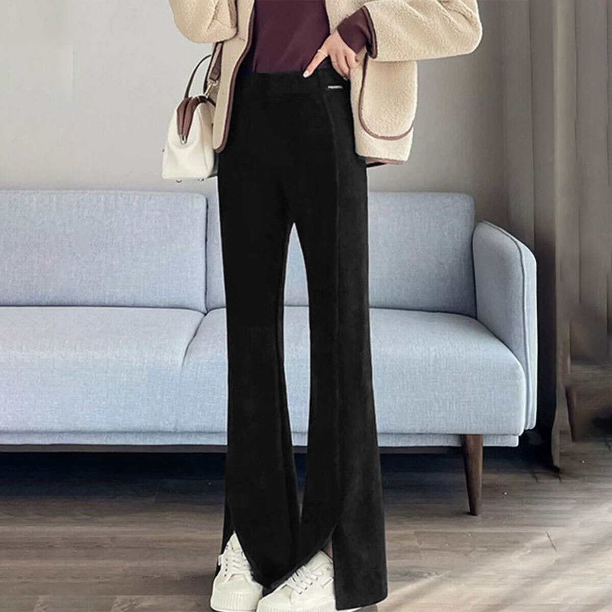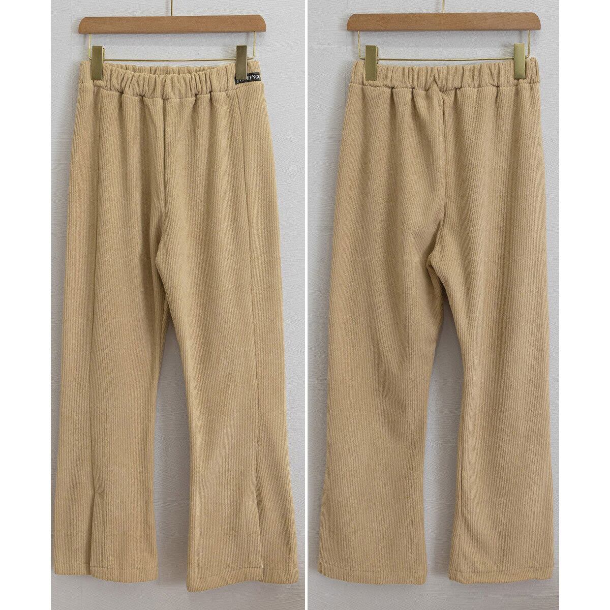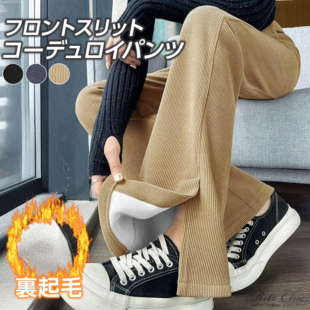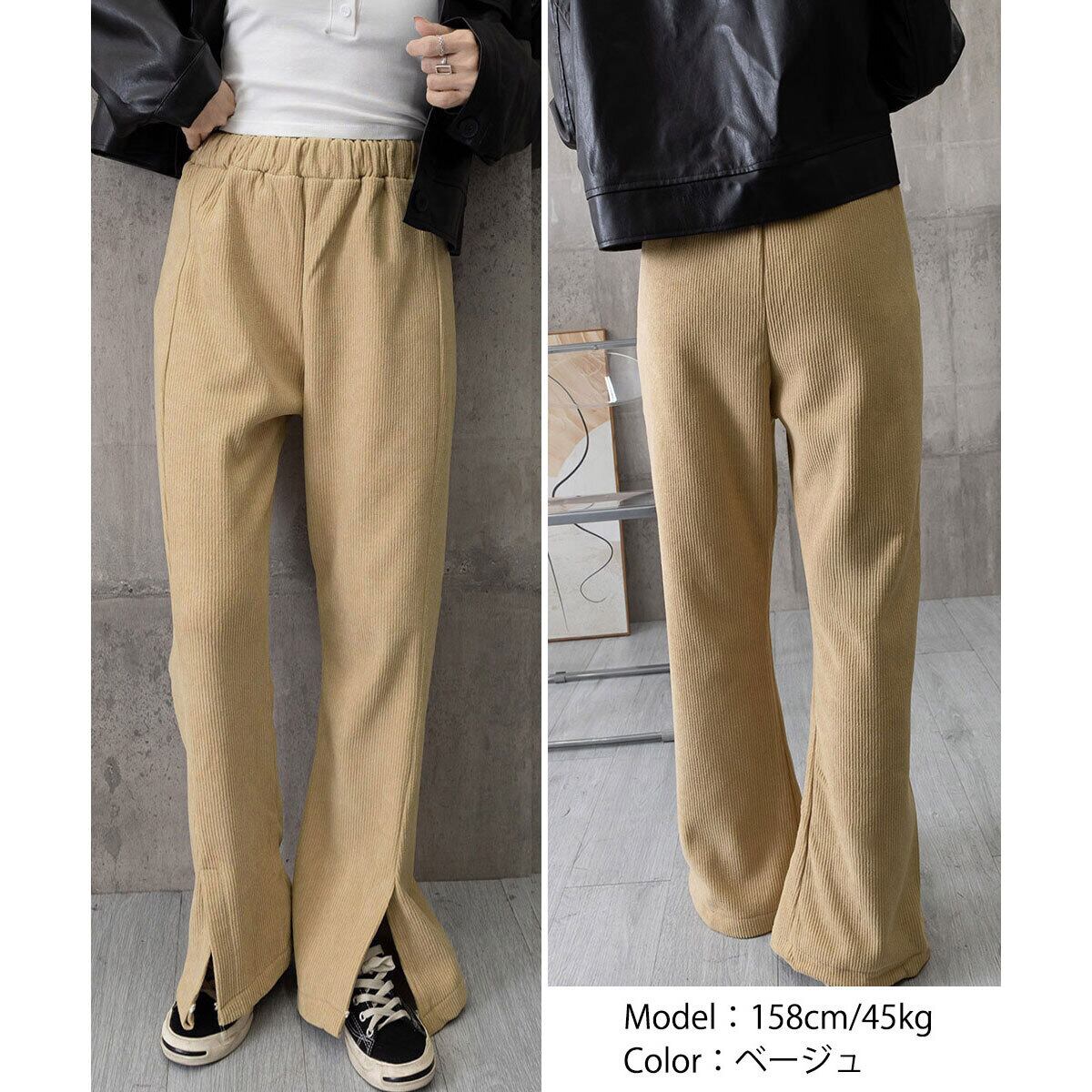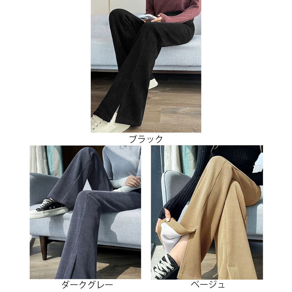コーデュロイ フレアパンツ レディース 秋冬 韓国 裏起毛 防寒 保温 暖かい おしゃれ きれいめ 大人 カジュアル ウエストゴム フロントスリット ハイウエスト 大人可愛い 大人女子