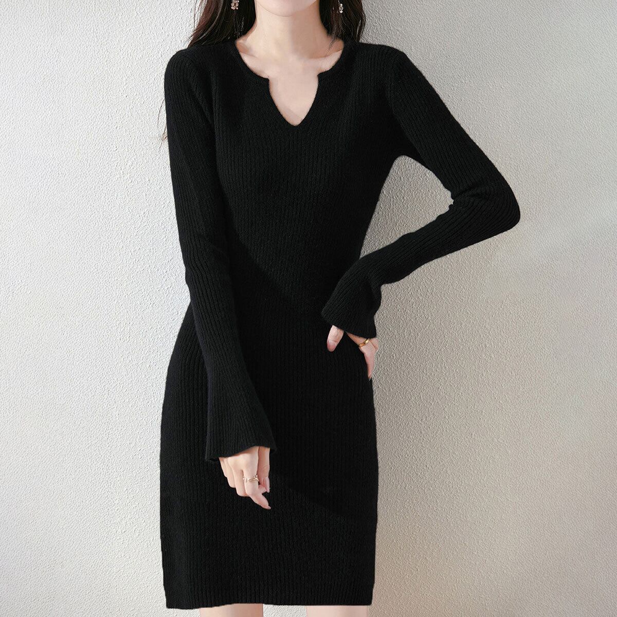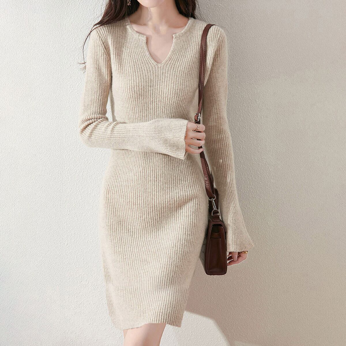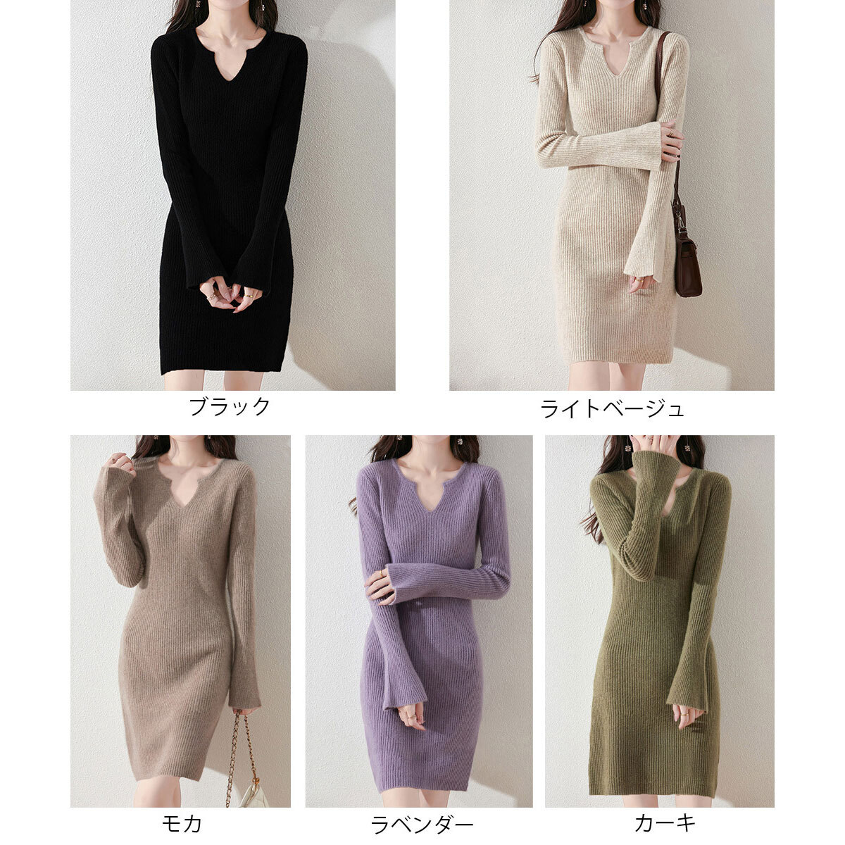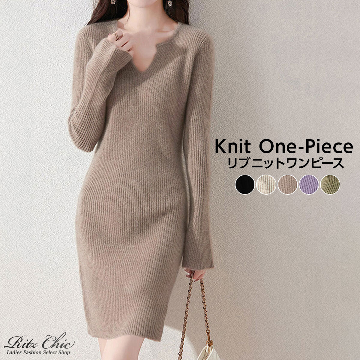 ニット ワンピース 長袖 レディース 秋冬 韓国 キーネック タイト リブニット きれいめ 大人 シンプル おしゃれ ニットワンピ 上品 伸縮性 大人可愛い 大人女子