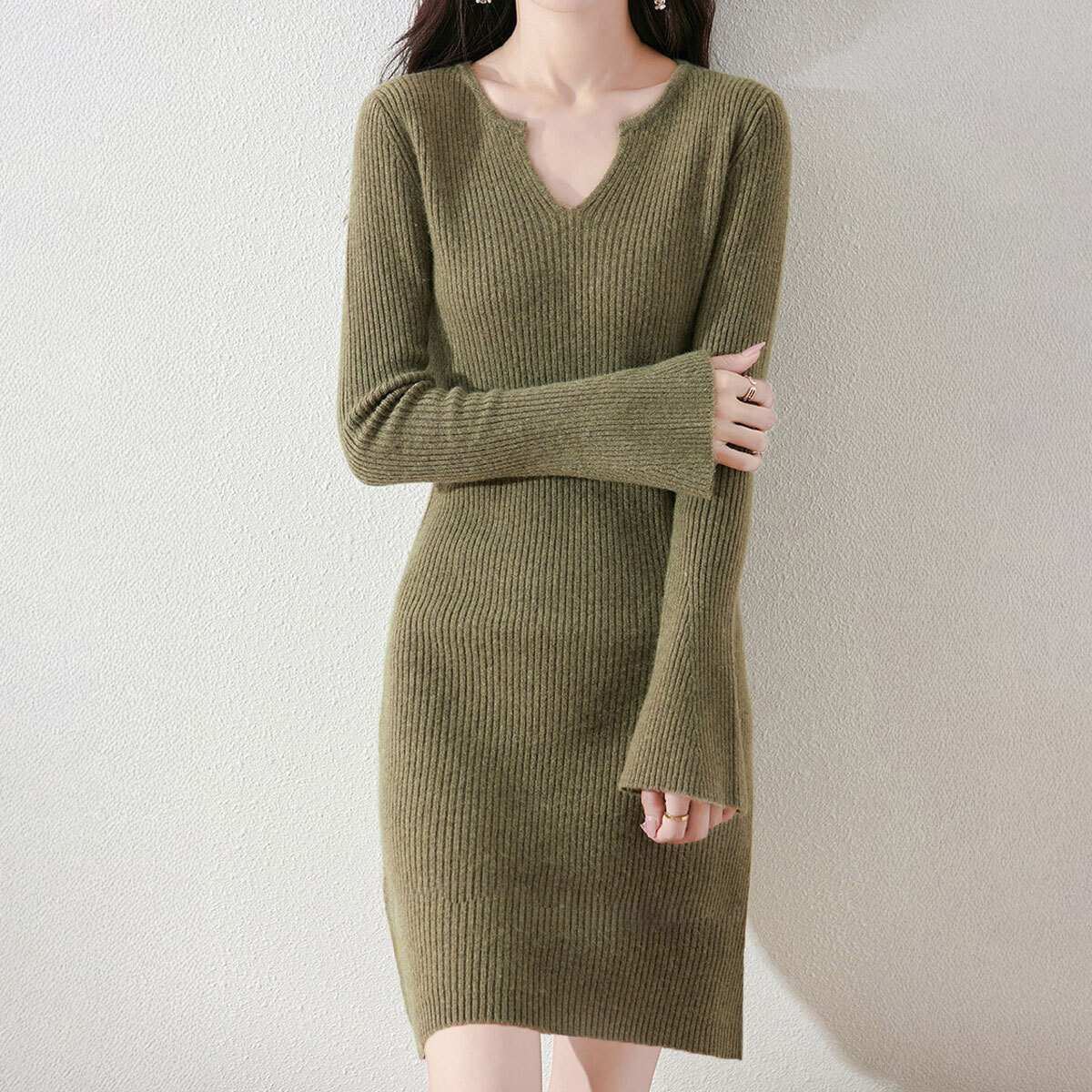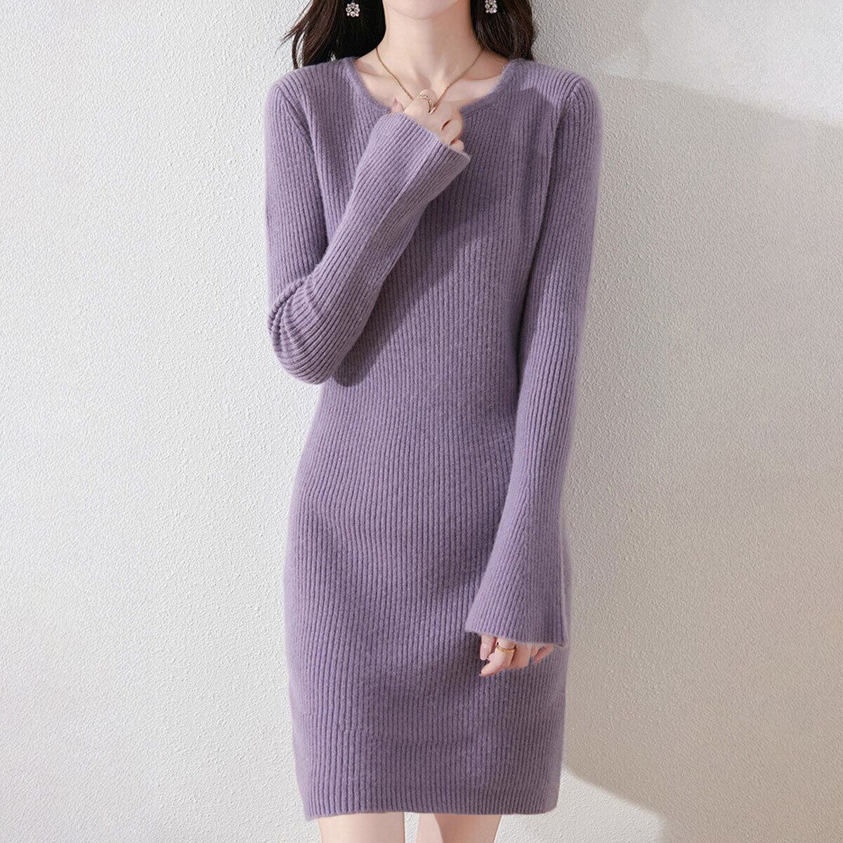 体のラインを美しく見せるシルエットでありながら、リラックス感も忘れず、動きやすさも兼ね備えた魅力的なニットワンピースです。