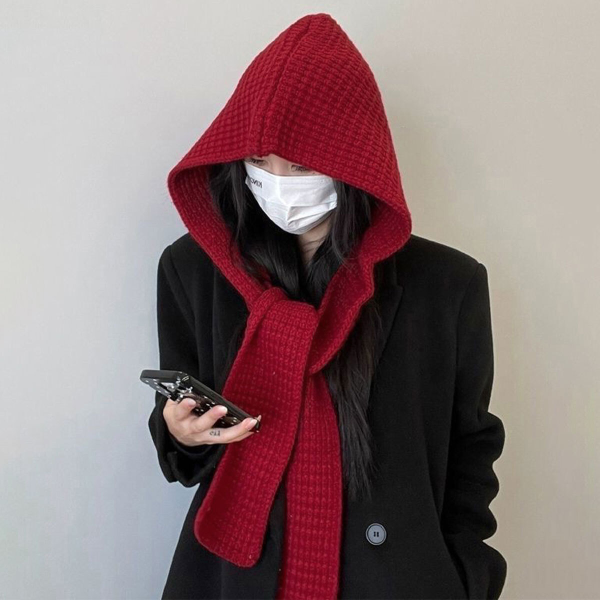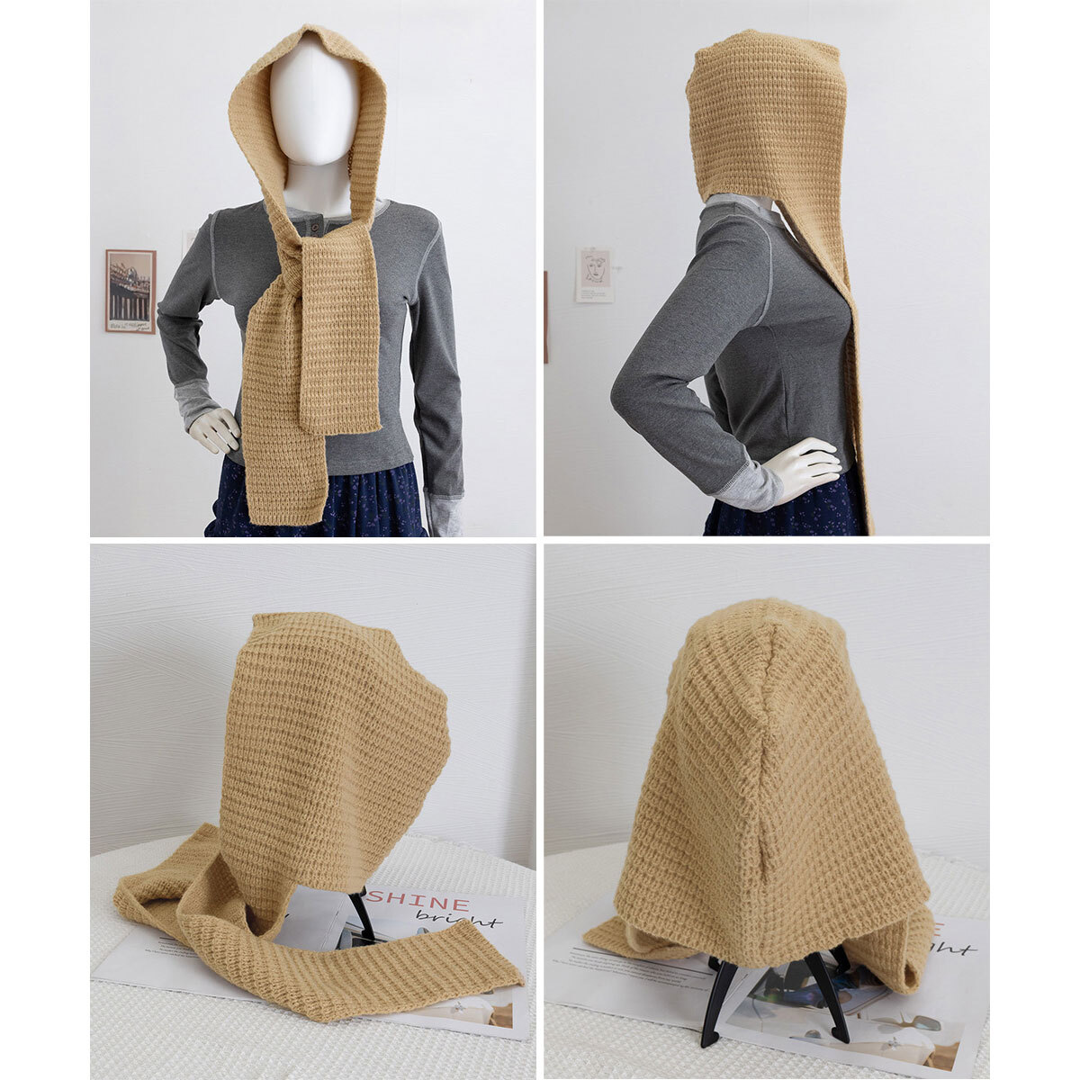 ◇防寒・防風性に優れたフード付きニットマフラー。