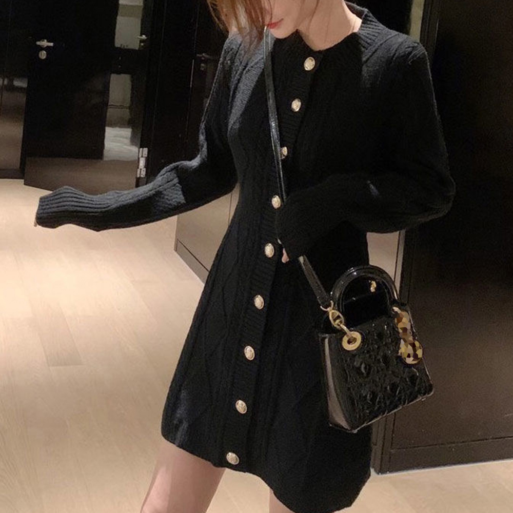 立体感のあるケーブルニットとゴールドボタンが、大人っぽさのある上品さときれいめな印象を引き立ててくれるミニ丈のニットワンピースです。