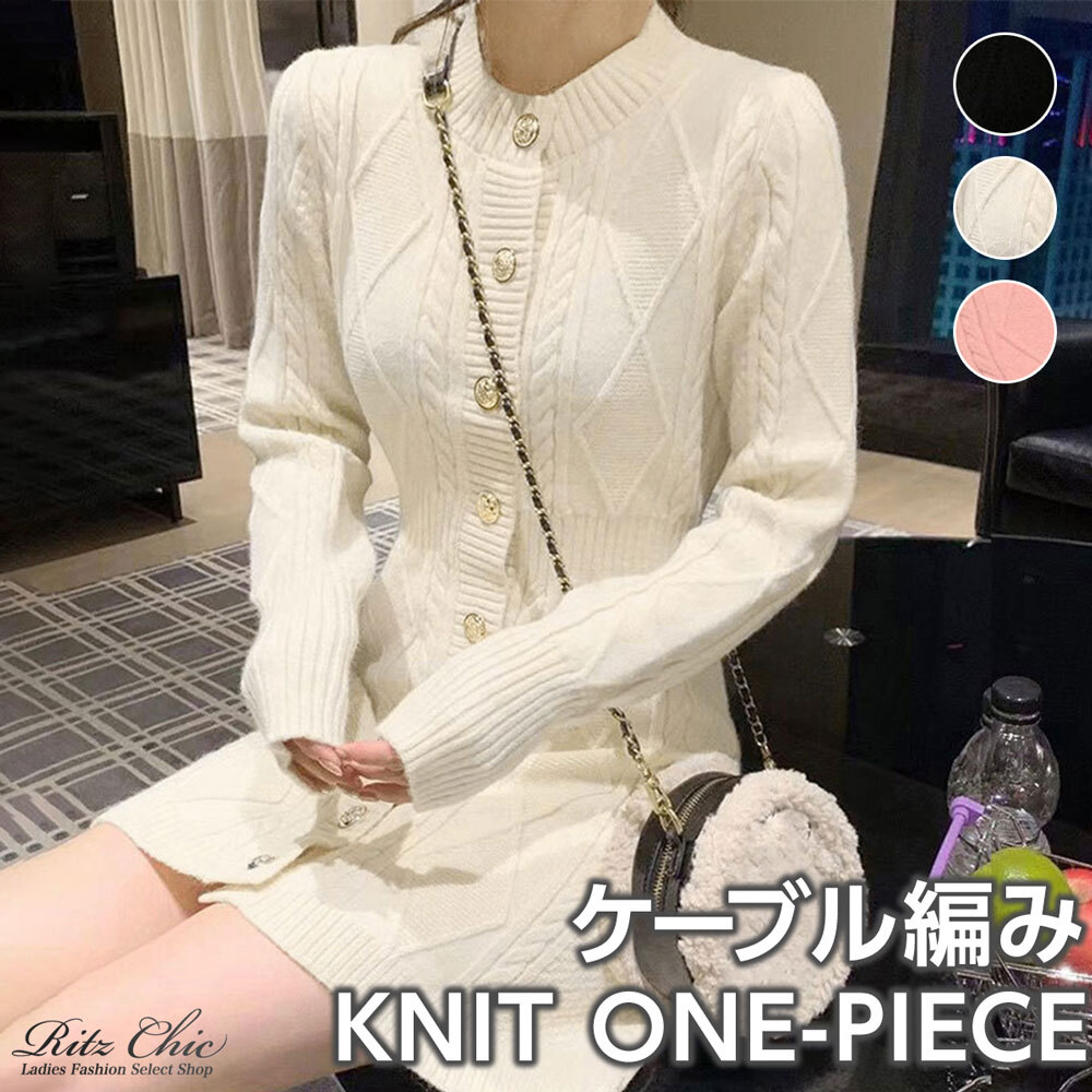 ◇ケーブル編みが施されたお洒落なニットワンピース。