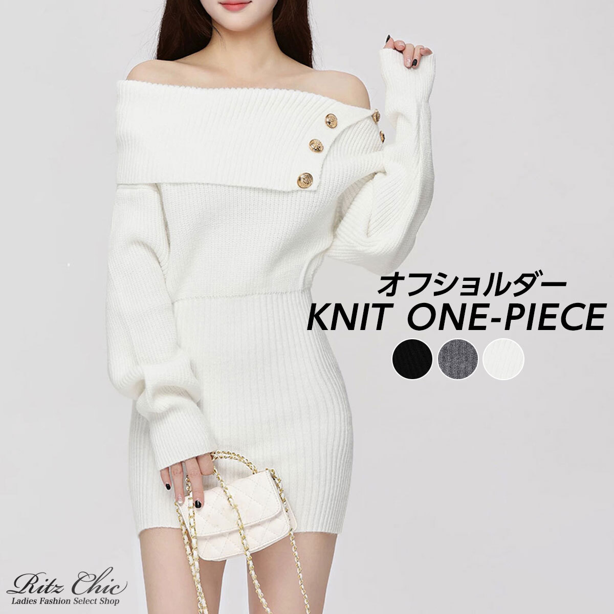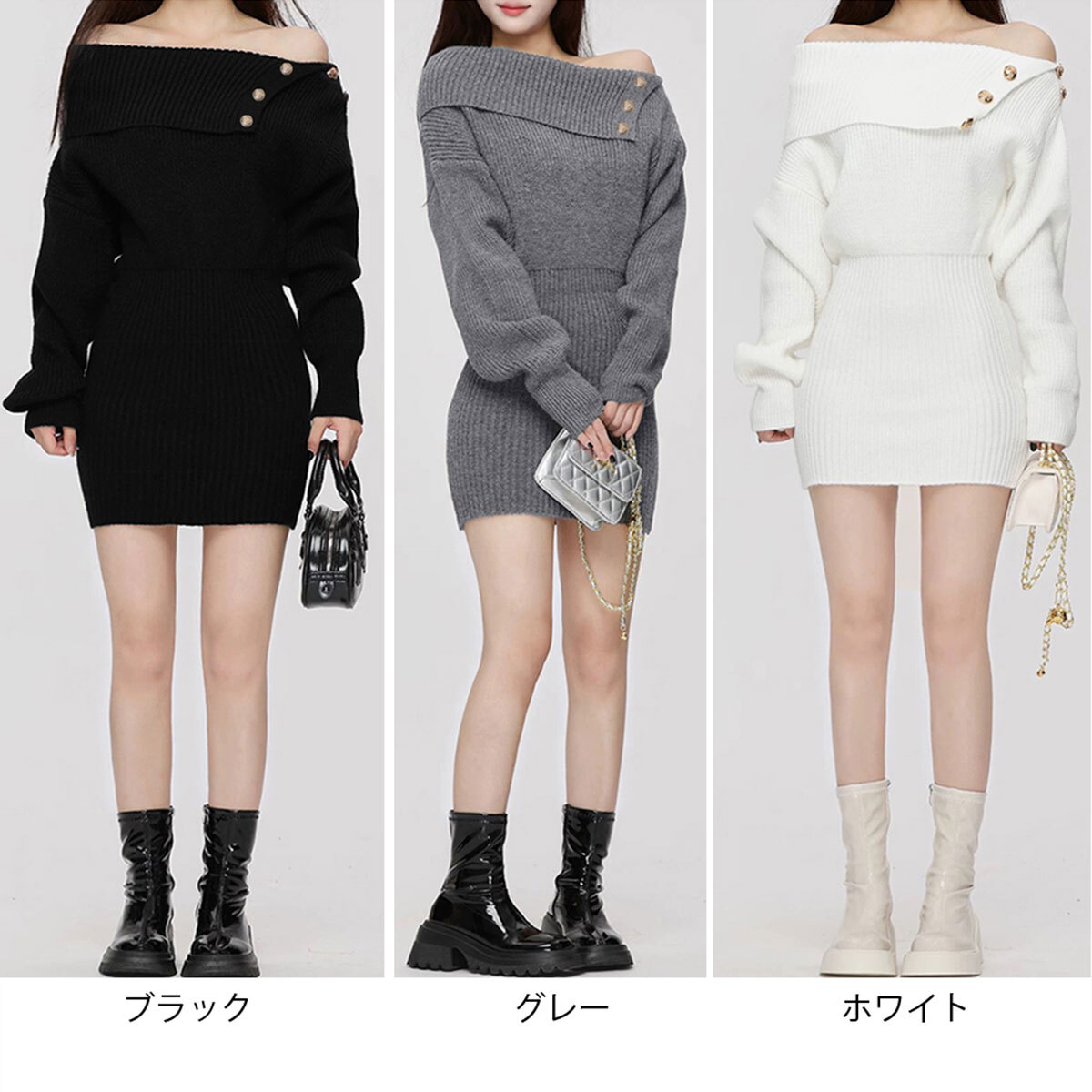 オフショルダー ニット ワンピース 長袖 レディース 秋冬 韓国 ミニワンピース おしゃれ きれいめ 大人 かわいい 肩出し オフショル ドレス 大人可愛い 大人女子
