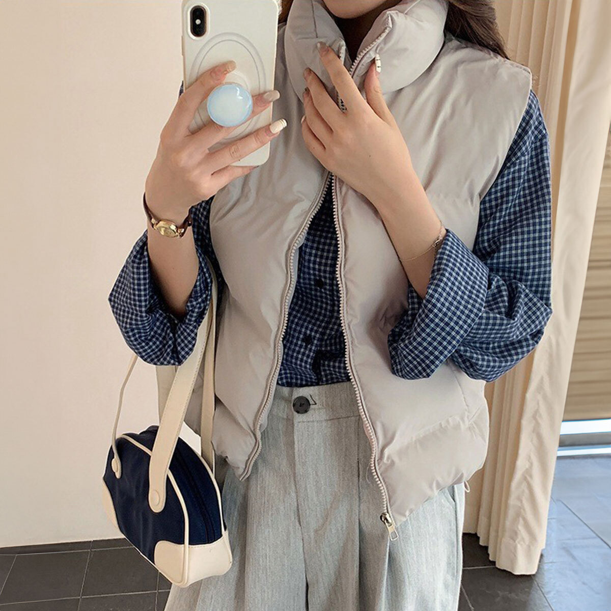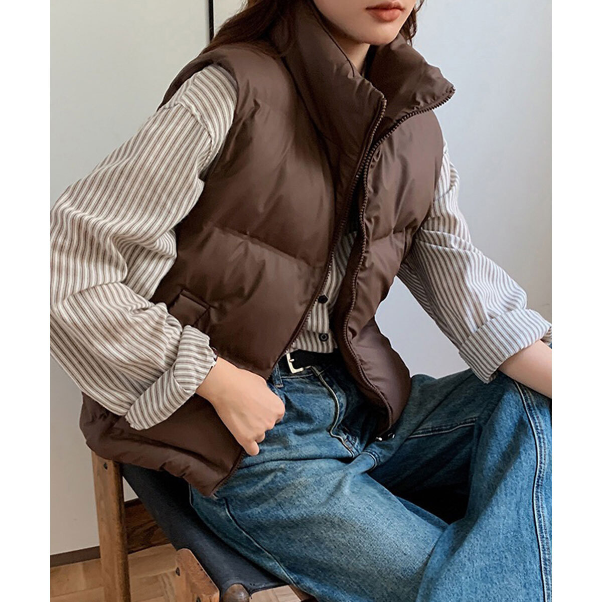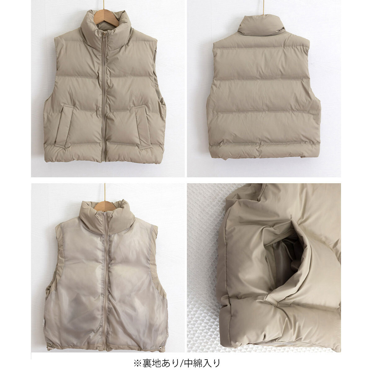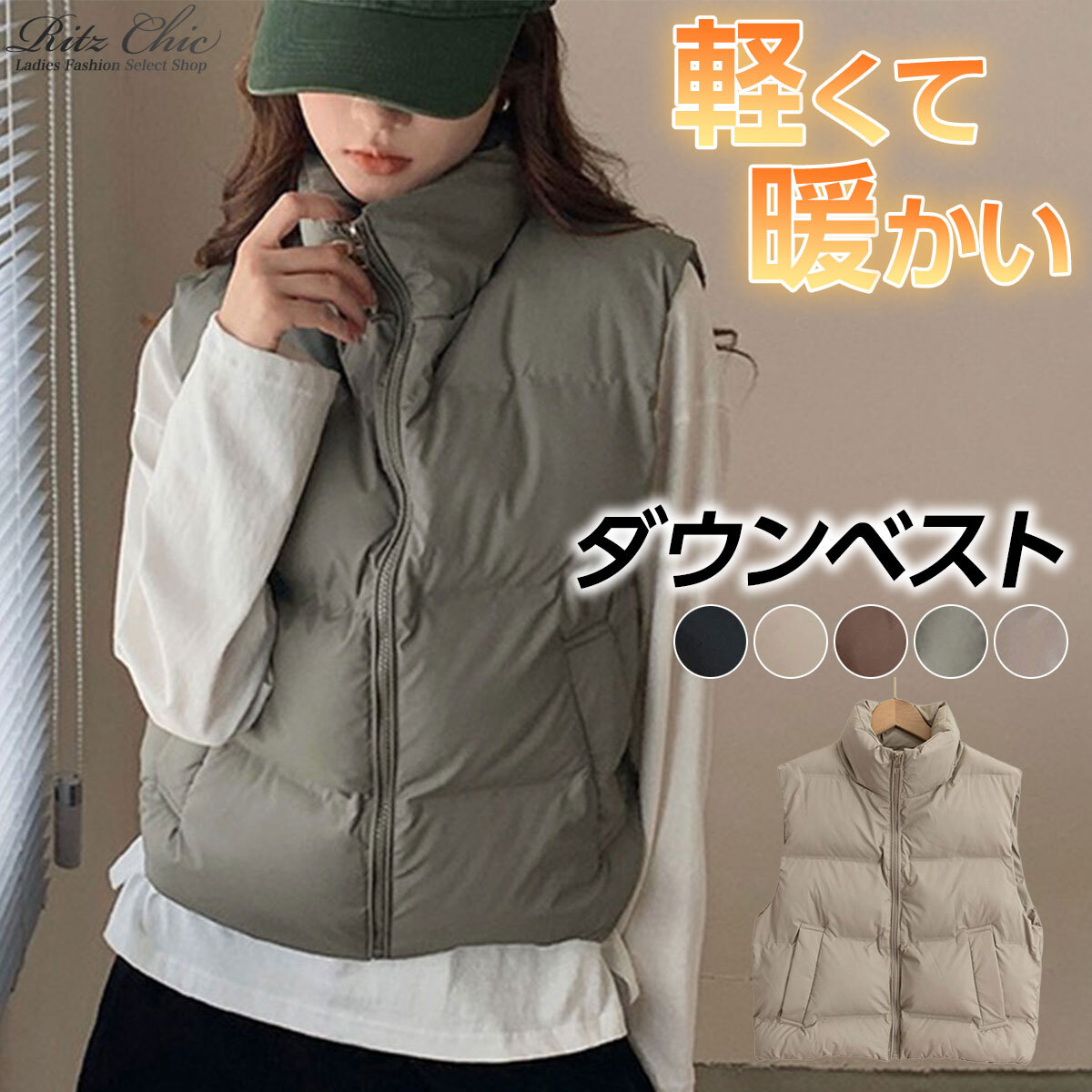ダウンベスト 中綿 ダウン レディース 秋冬 韓国 防寒 保温 暖かい 軽量 大人 カジュアル ゆったり 重ね着 レイヤード ショート丈 ハイネック エコダウンジャケット 大人可愛い 大人女子
