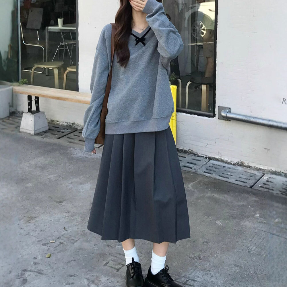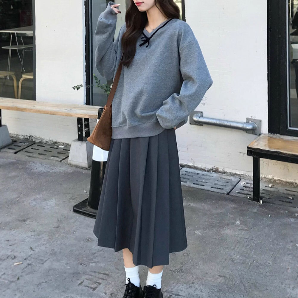 【送料無料】 スウェット シャツ 長袖 リボンネック レディース 春秋冬 韓国 おしゃれ 大人 カジュアル ゆったり シンプル Vネック 体型カバー 大人可愛い 大人女子