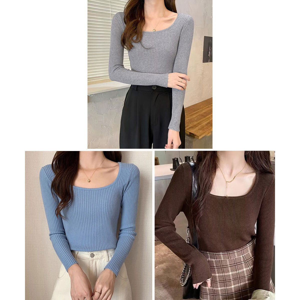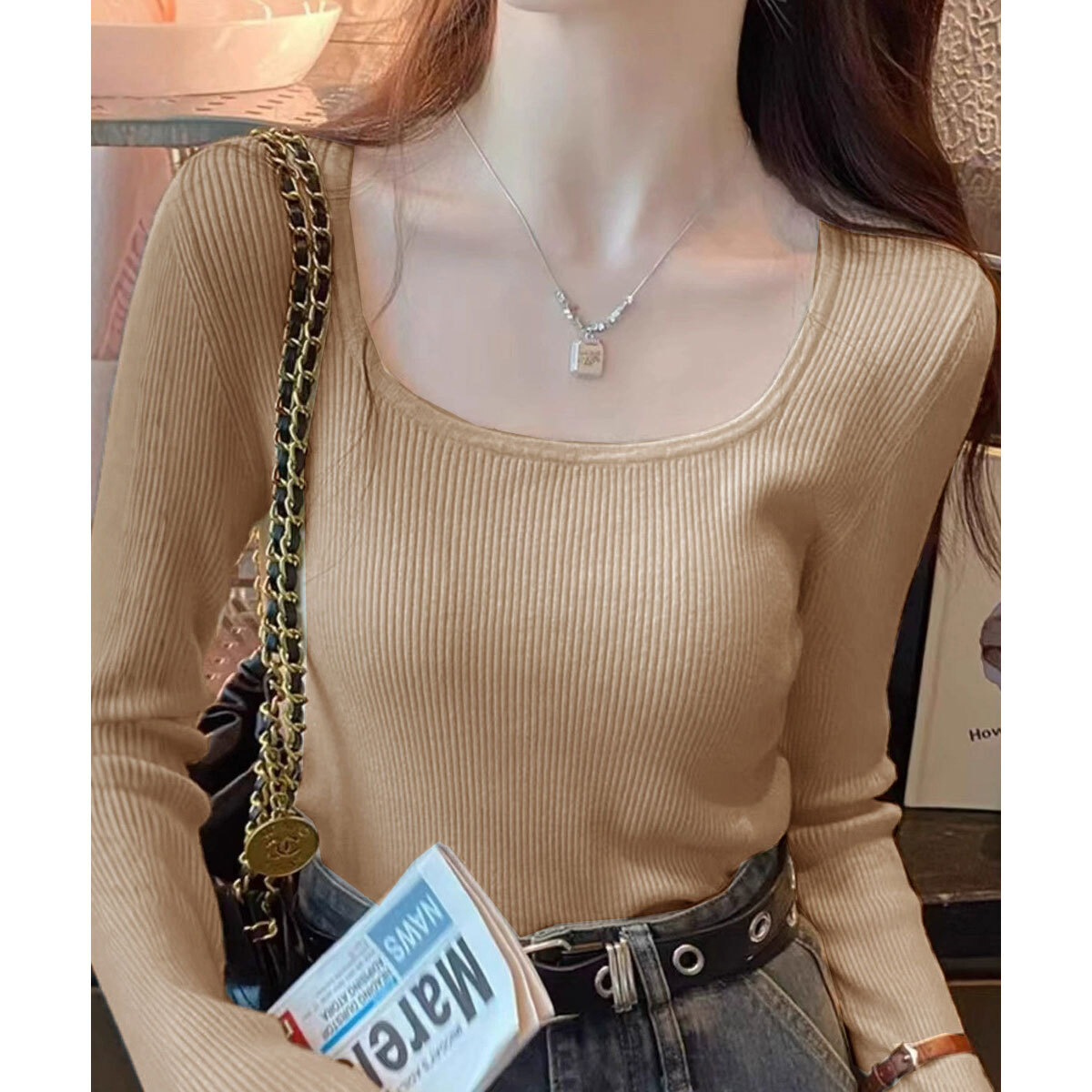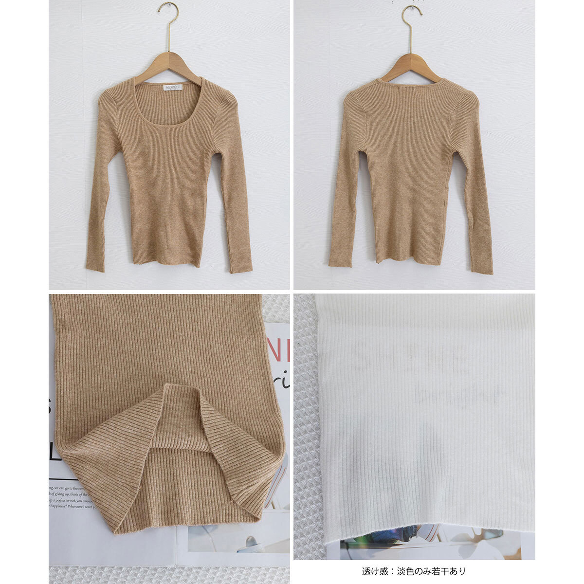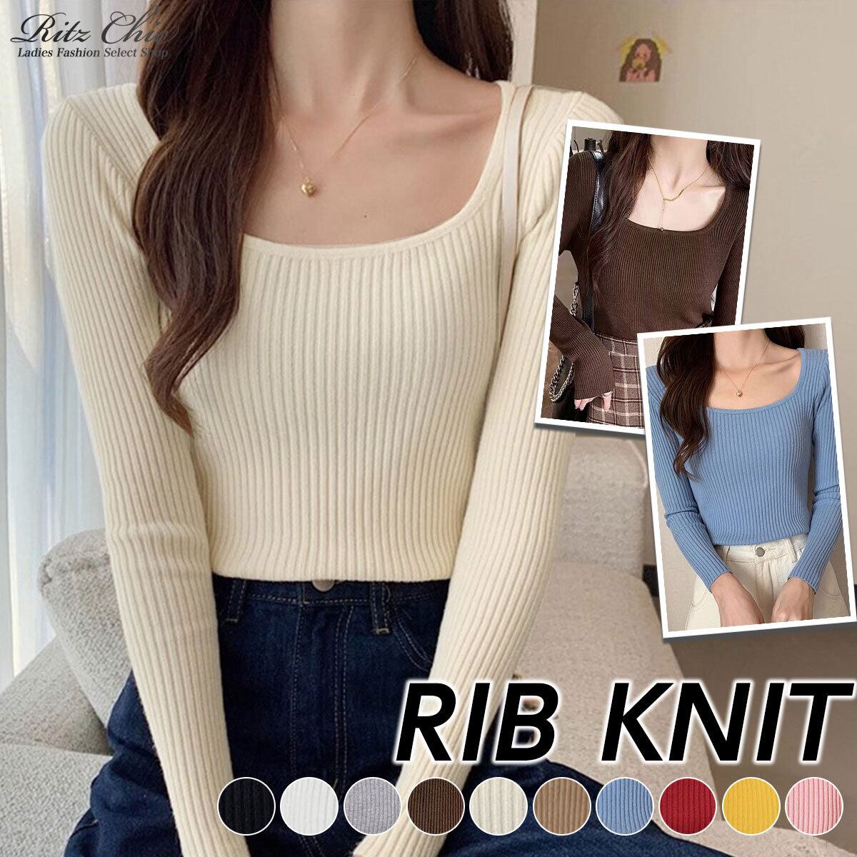 スクエアネック リブニット 長袖 レディース 春秋冬 ニット トップス 韓国 きれいめ シンプル 着回し インナー 大人 カジュアル 大人可愛い 大人女子