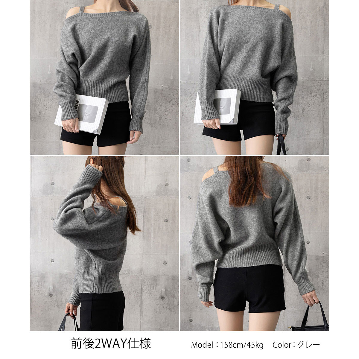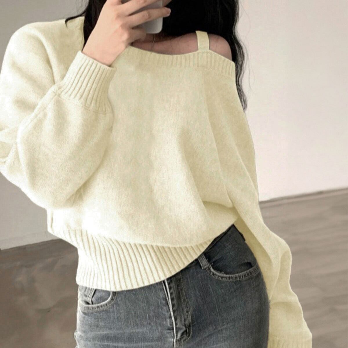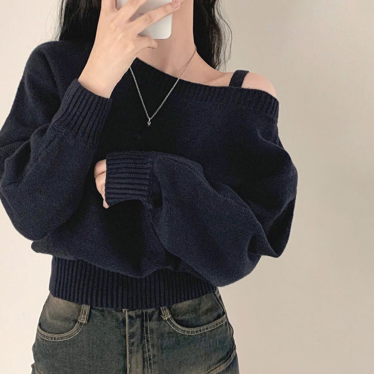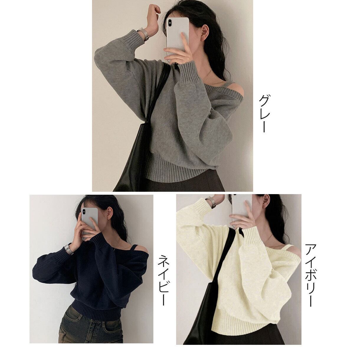 オフショルダー ニット 肩出し 前後2way レディース 春秋冬 韓国 おしゃれ 大人 カジュアル きれいめ ゆったり アシンメトリー ワンショルダー オフショルトップス 大人可愛い 大人女子