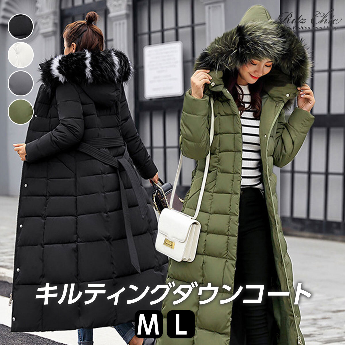 キルティング ダウン コート レディース 冬 防寒 防風 保温 韓国 ロングコート きれいめ おしゃれ 大人 カジュアル 通勤 通学 ファーフード エコダウン 大人可愛い 大人女子