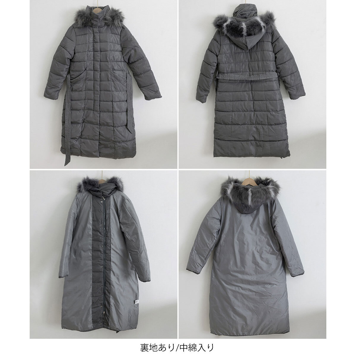 軽量で暖かい中綿入りで、防寒性と保温性に優れたフェイクダウンのロングコートです。