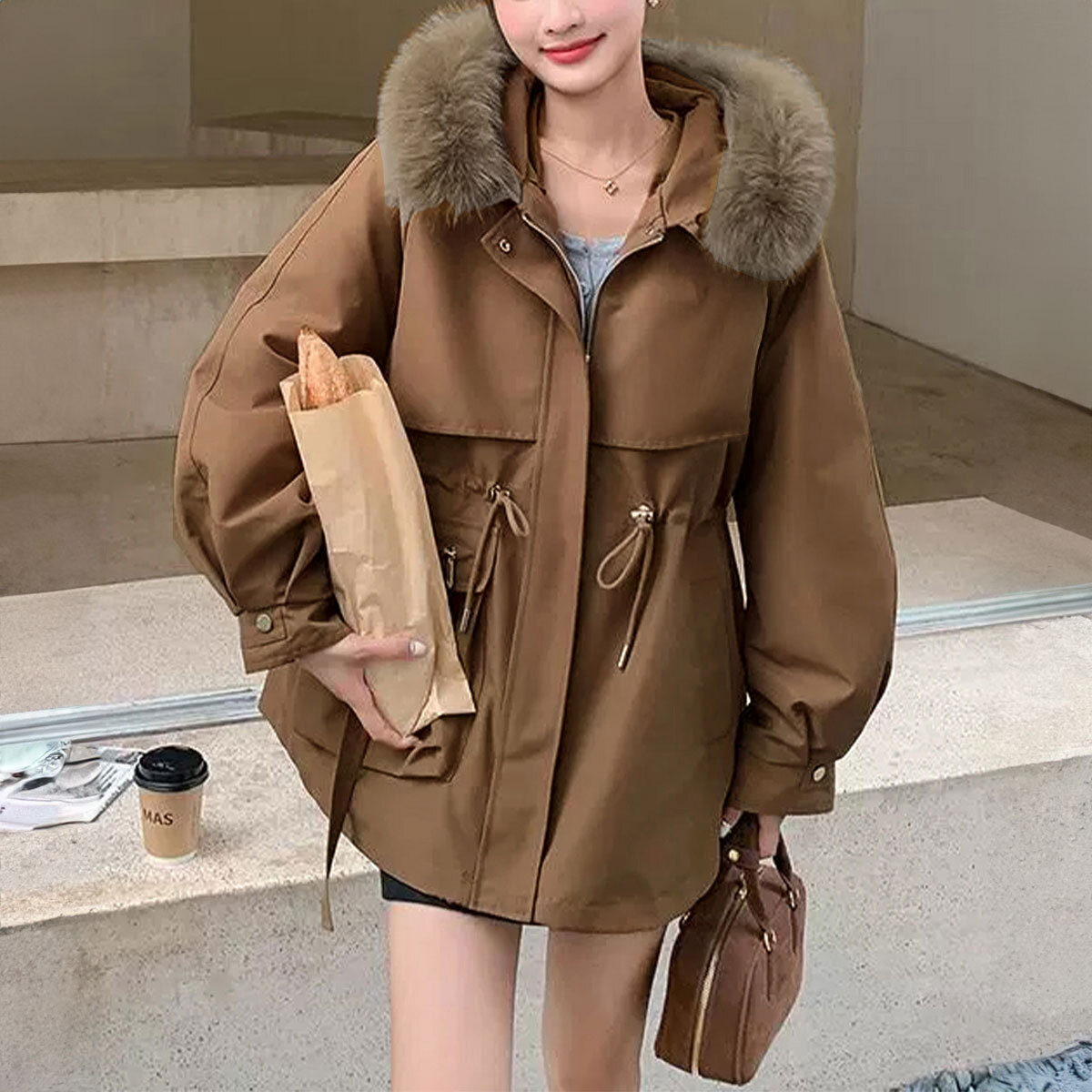 ボリュームたっぷりのファーが目を惹き、トレンドを押さえた韓国風のデザインが、冬の大人女子スタイルにぴったりなアイテムです。