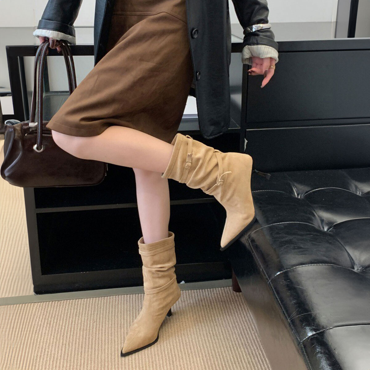 ◇しなやかなスエード素材のミドル丈ブーツ。