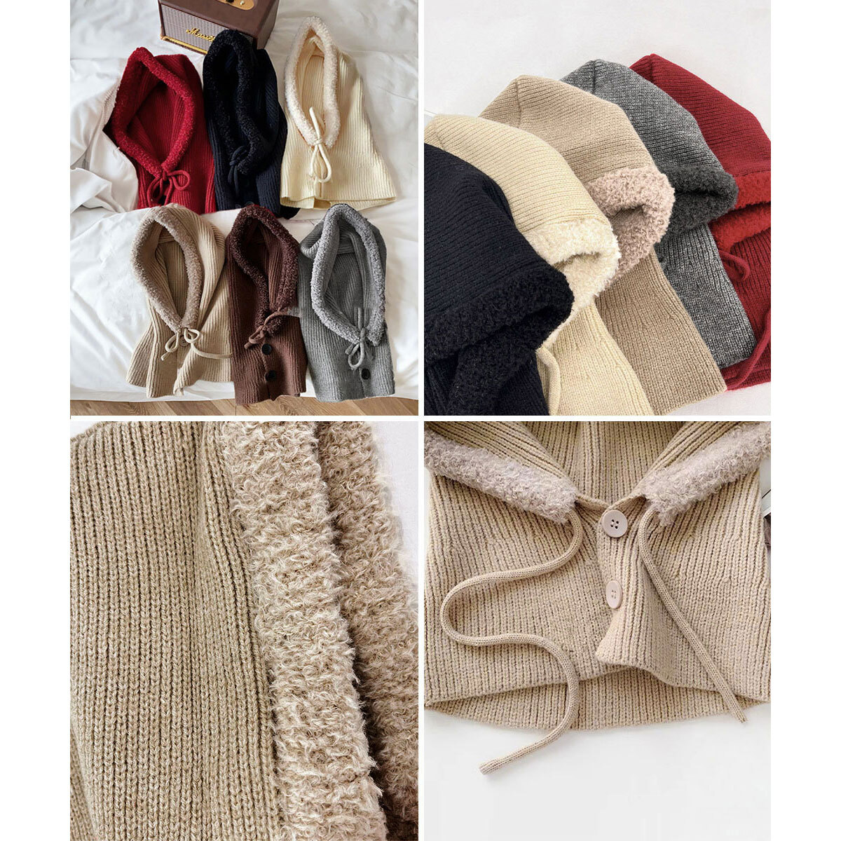 もこもこのボア素材と、ふんわり柔らかいニットの組み合わせで、顔周りから首元まで暖かく包み込み、秋冬の寒さからしっかりと守ってくれます。