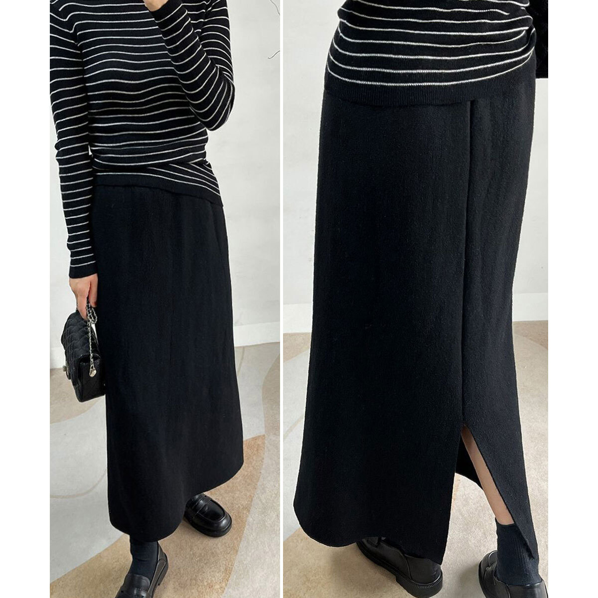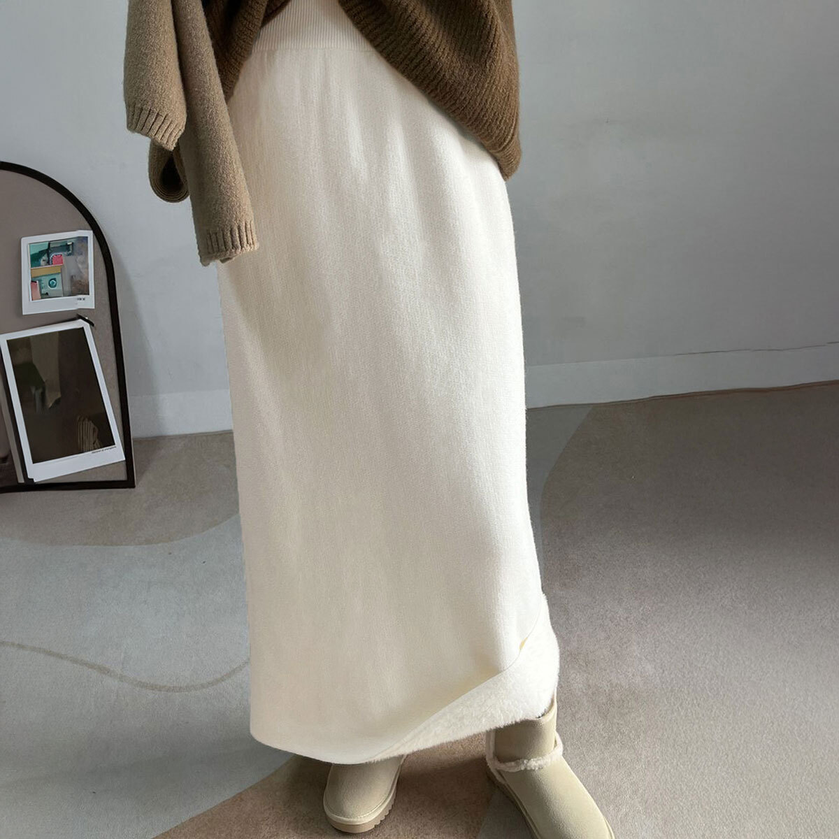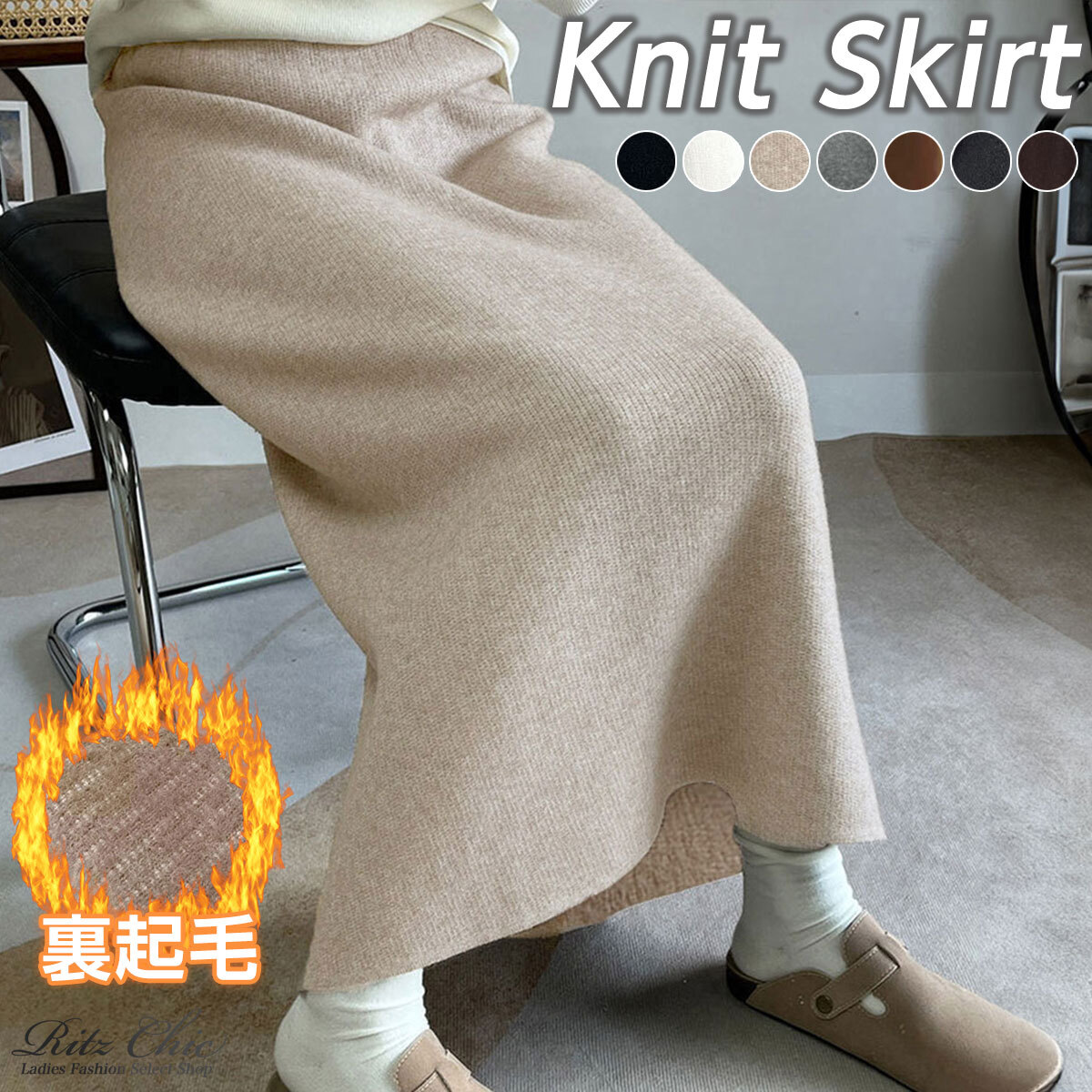 ニット タイトスカート レディース 秋冬 韓国 ロングスカート 裏起毛 防寒 防風 おしゃれ 大人 きれいめ カジュアル シンプル 厚手 ハイウエスト ウエストゴム 大人可愛い 大人女子