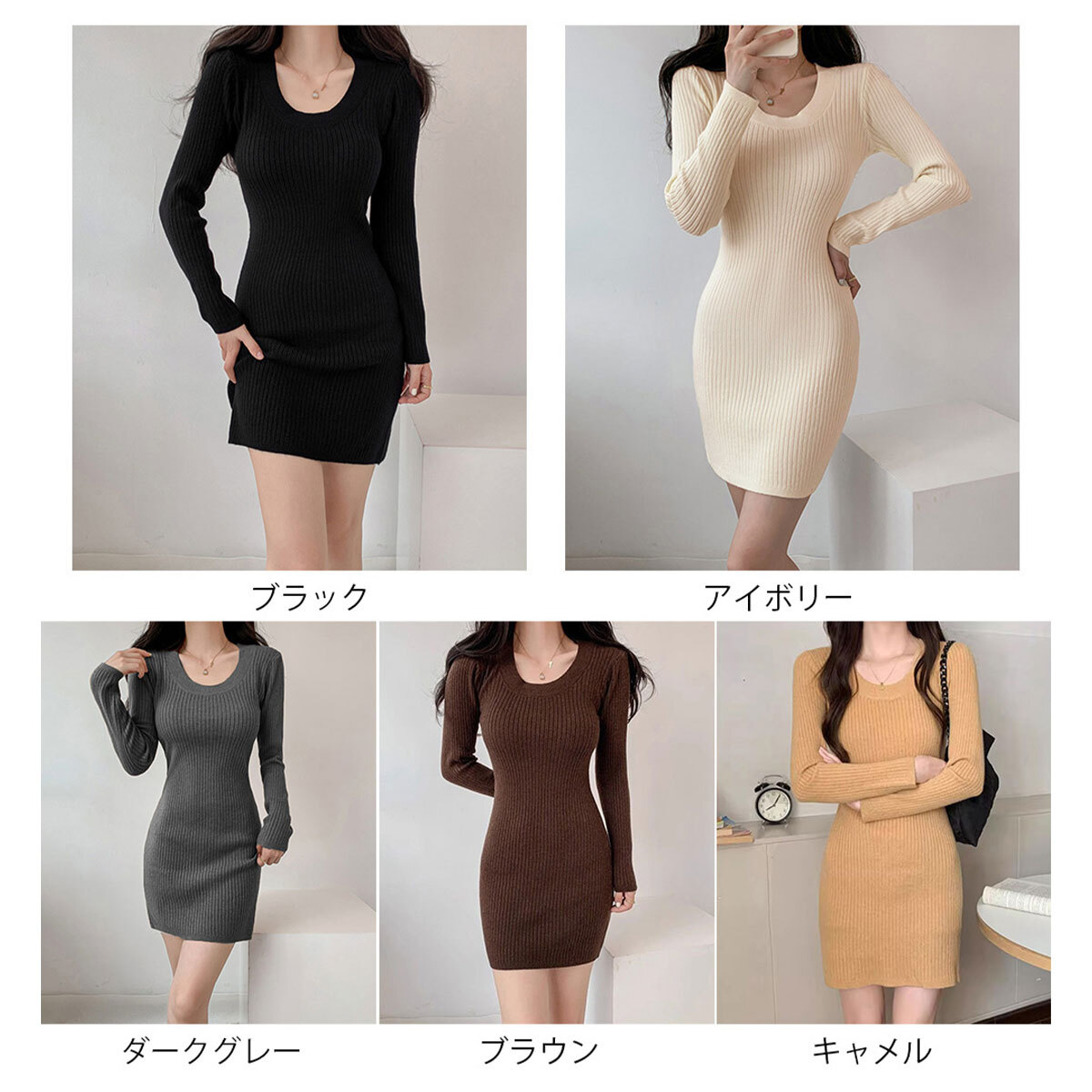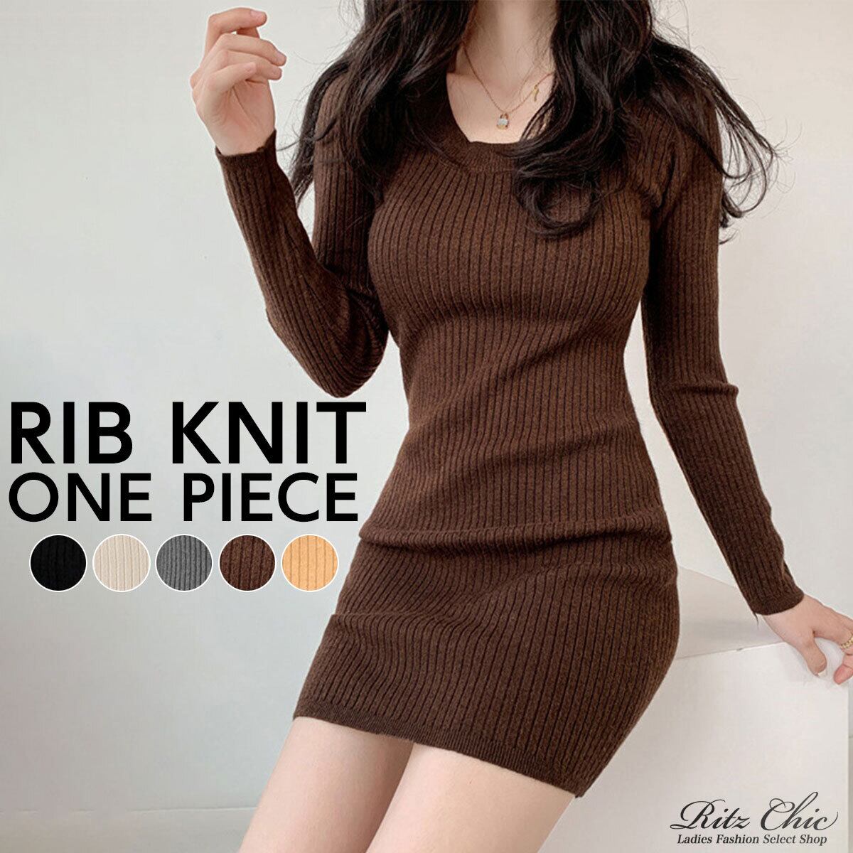リブニット ミニワンピース レディース 秋冬 韓国 ワンピース きれいめ 大人 シンプル カジュアル タイト 伸縮性 インナー 重ね着 大人可愛い 大人女子